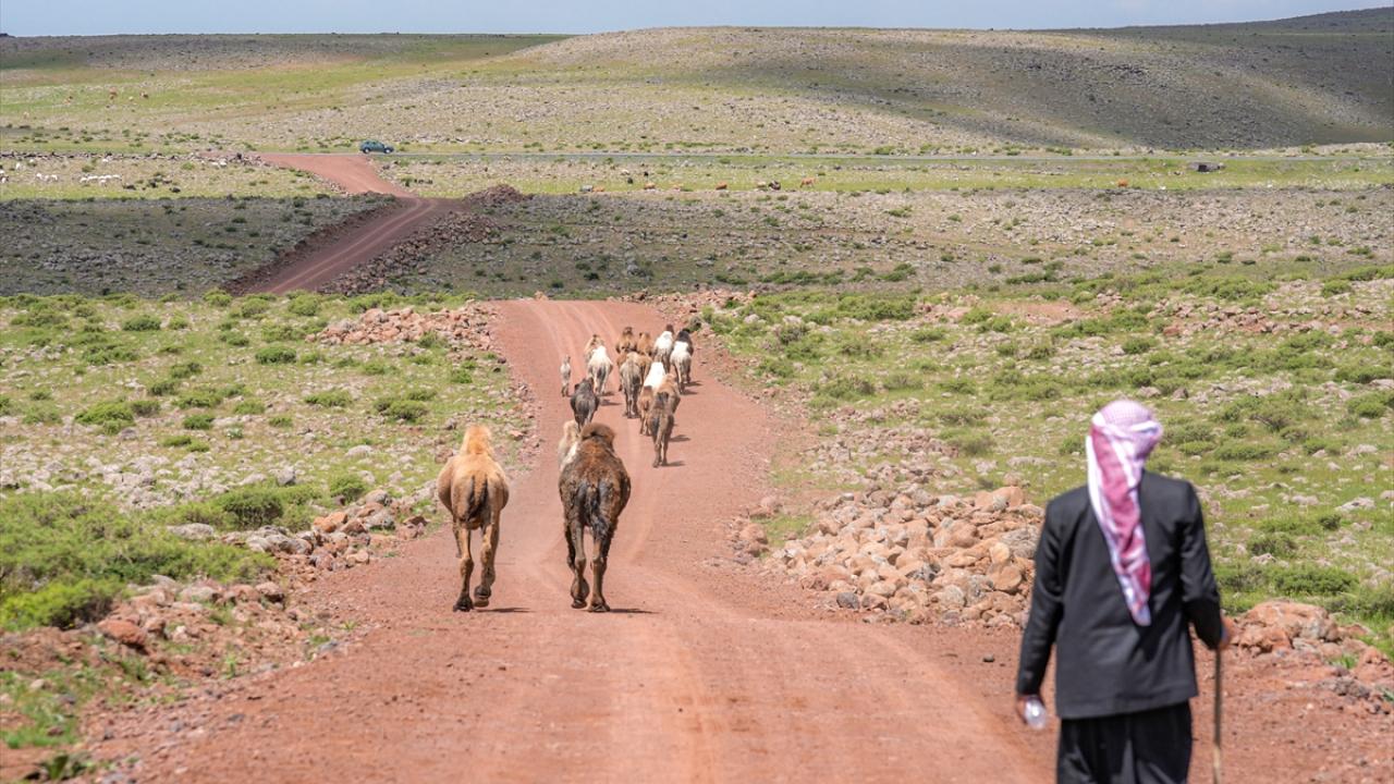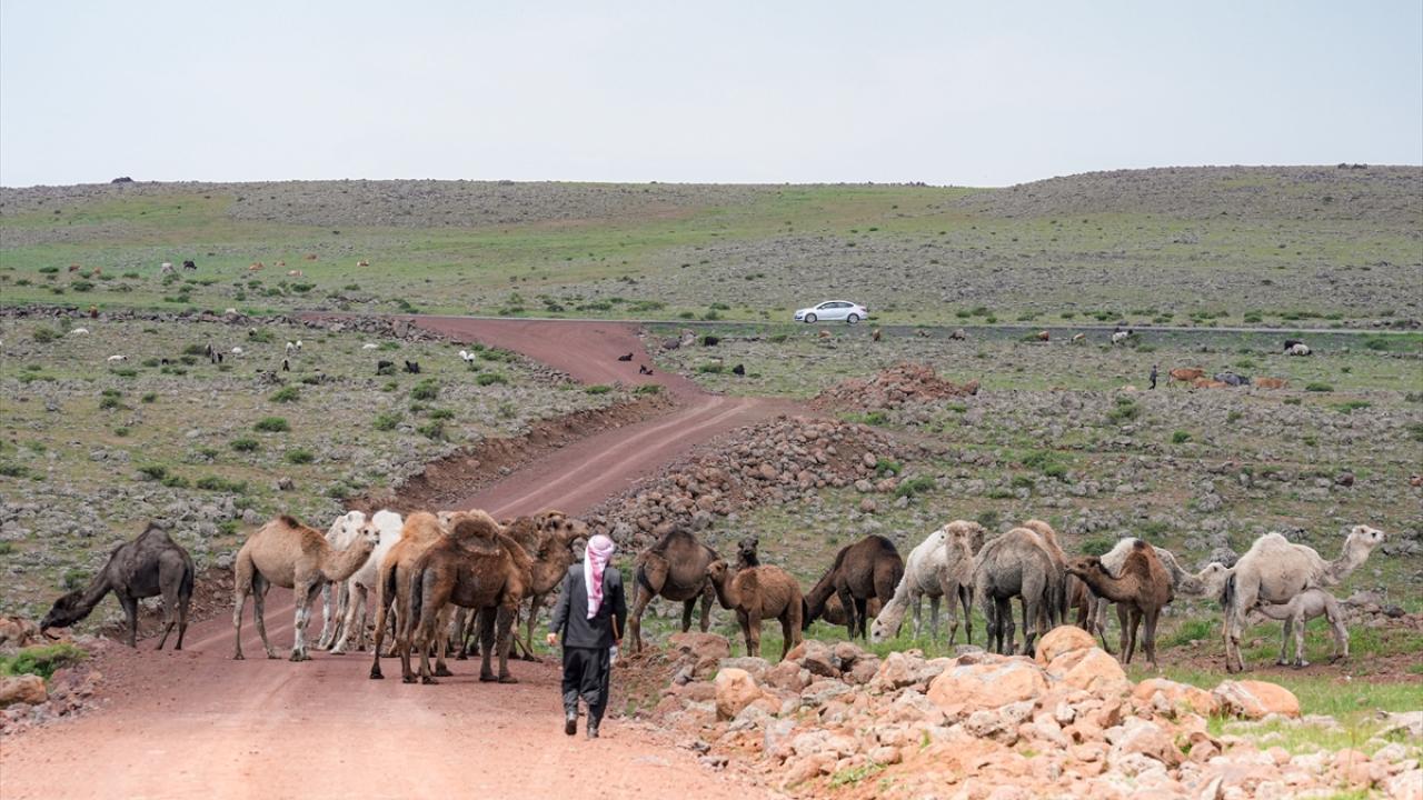 Diyarbakır-Şanlıurfa sınırındaki Karacadağ'da besicilik yapan 58 yaşındaki Ali Kayahan, yetiştirdiği develeri olası kazalardan korumak için kara yoluna resimli ve "Dikkat deve çıkabilir" yazılı tabela konulmasını istiyor.