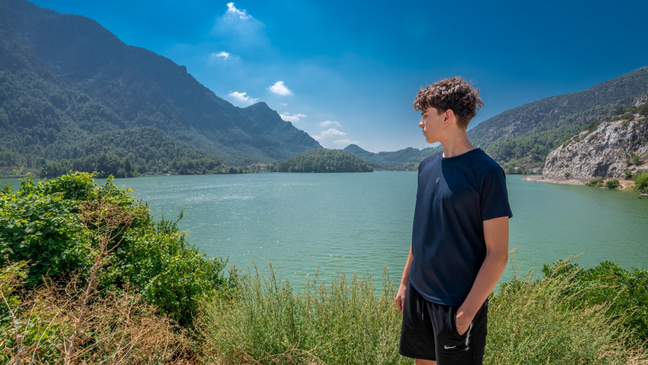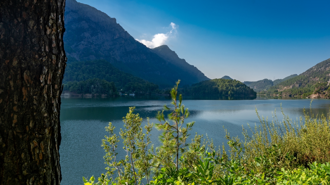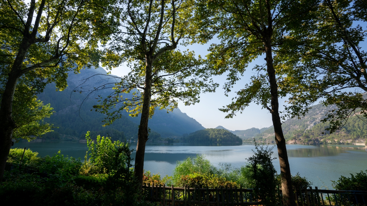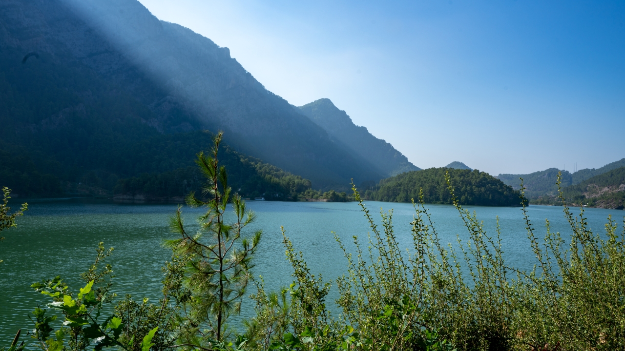 Sulama ve enerji üretimi amacıyla inşa edilen göl yüksek dağlarla çevreli.