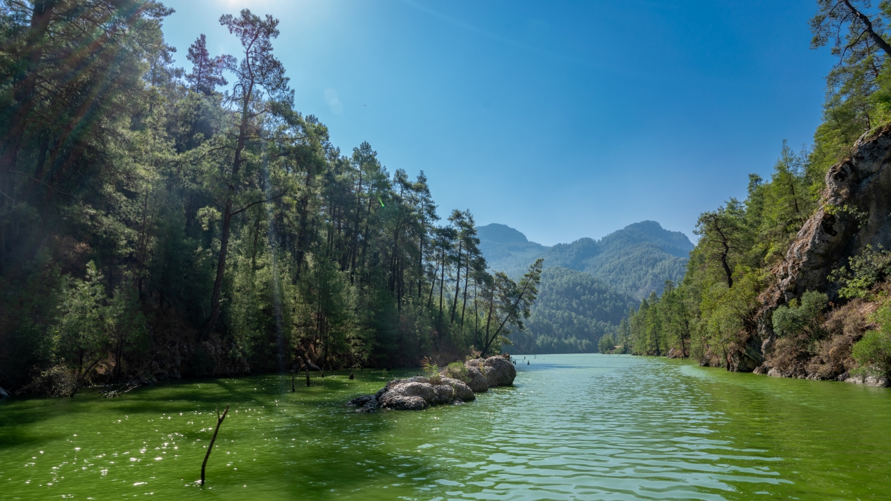 Zamanla çevresindeki bitki örtüsüyle uyumlu hale gelen göl doğal bir görüntüye kavuşmuş.