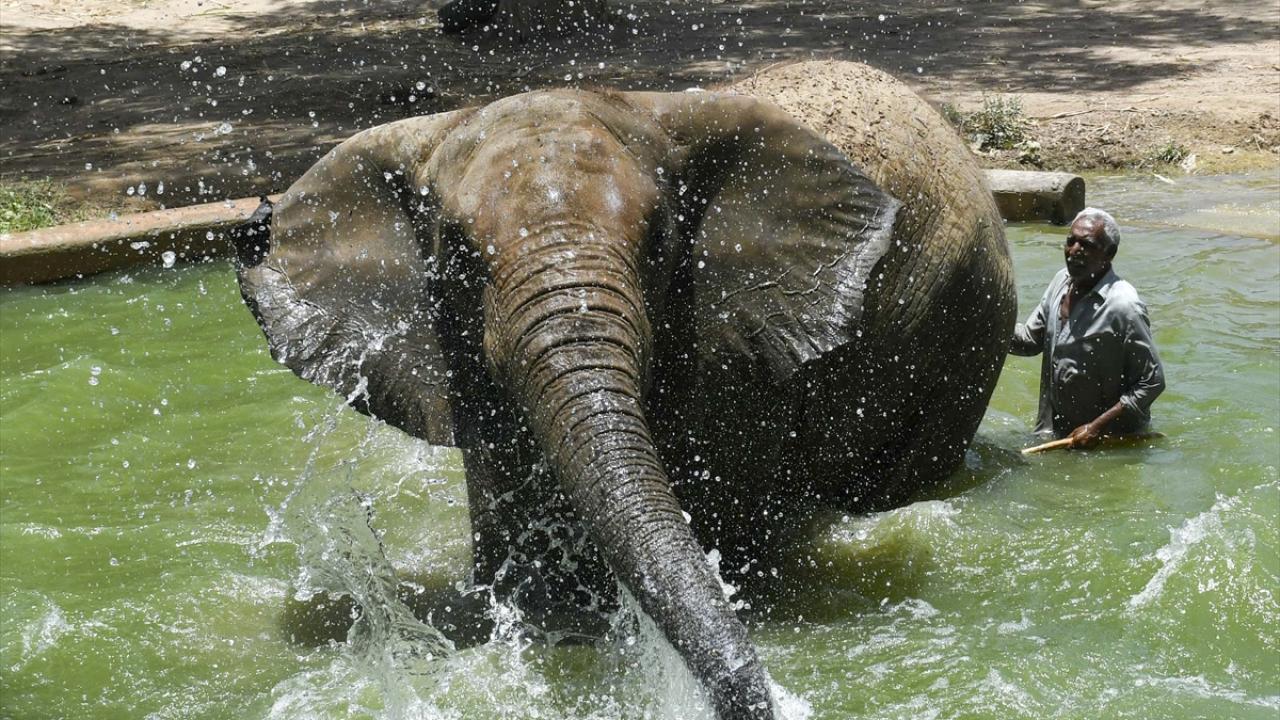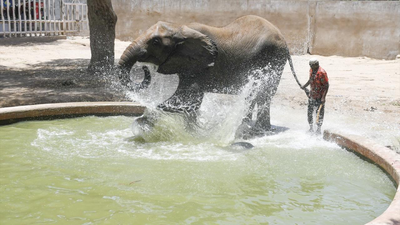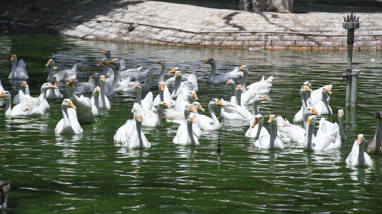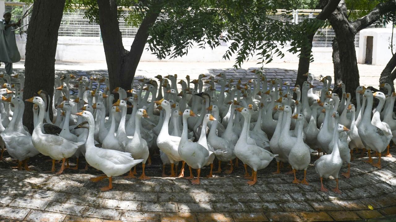 Pakistan'da sıcaklığın 40 santigrat dereceyi aşmasıyla birlikte Karaçi kentindeki hayvanat bahçesinde bulunan ördekler serinlemek için gölgelik alanları tercih etti.