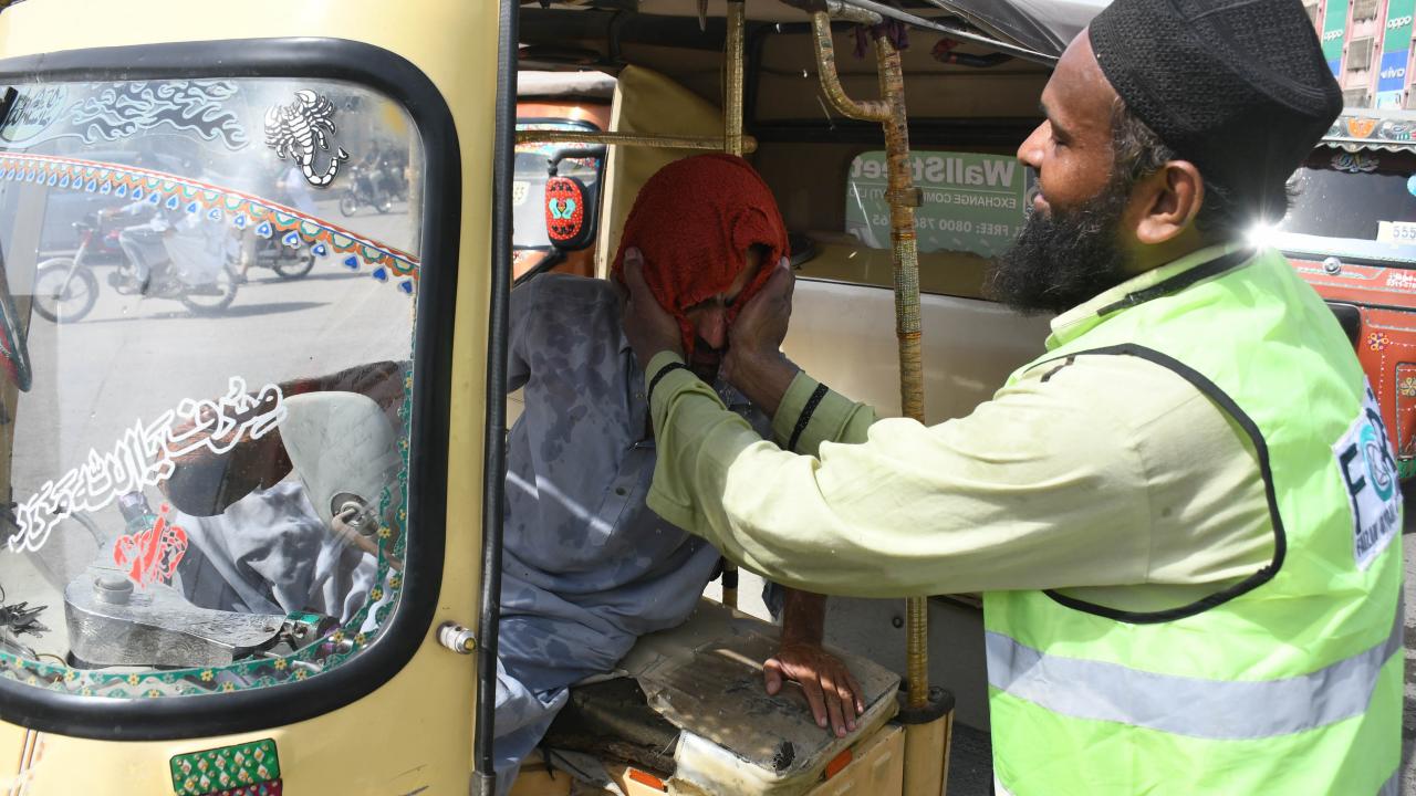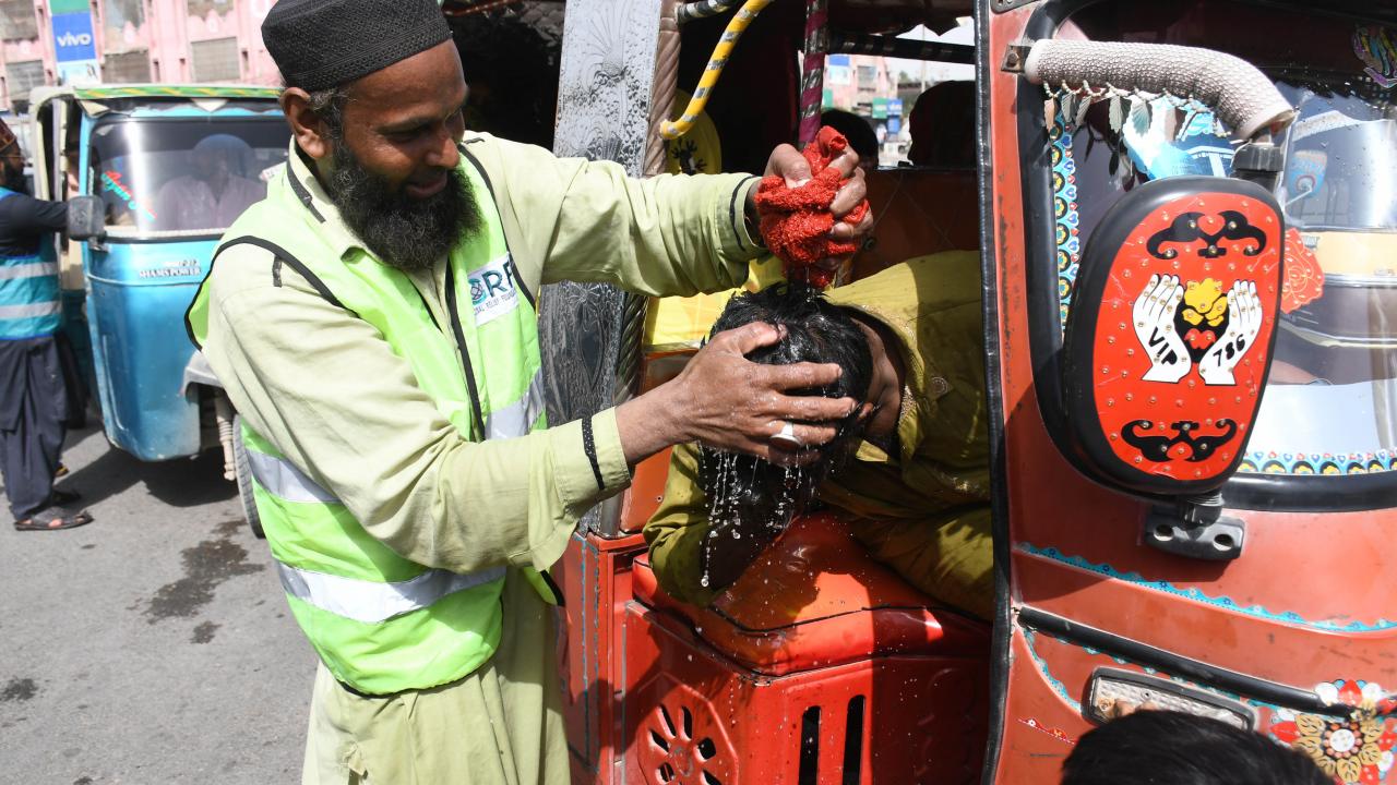 Pakistan’da son günlerde etkili olan sıcak hava günlük hayatı olumsuz etkiledi. Karaçi kentindeki vatandaşlar güneşten etkilenmemek için ıslak havlularla serinlemeye çalıştı.