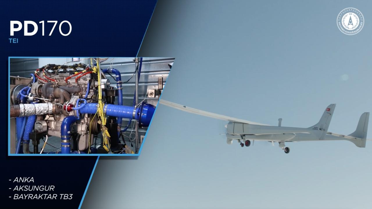 İnsansız hava araçlarında Bayraktar TB3`e güç veren PD200 motoru envantere girdi, ANKA ve AKSUNGUR’a entegre edilen PD170 motoru ile test faaliyetleri devam ediyor, KARGI İHA için PG50 motoru ile bağımsız kabiliyetler elde edildi. GÖKBEY helikopterinde kullanılacak milli TS1400 turboşaft motorunun sertifikasyon testleri devam ediyor, seri üretim çalışmaları da başarıyla yürütülüyor.