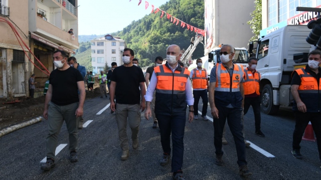 Ulaştırma ve Altyapı Bakanı Karaismailoğlu, sel felaketinin ardından bölgede incelemelerde bulundu