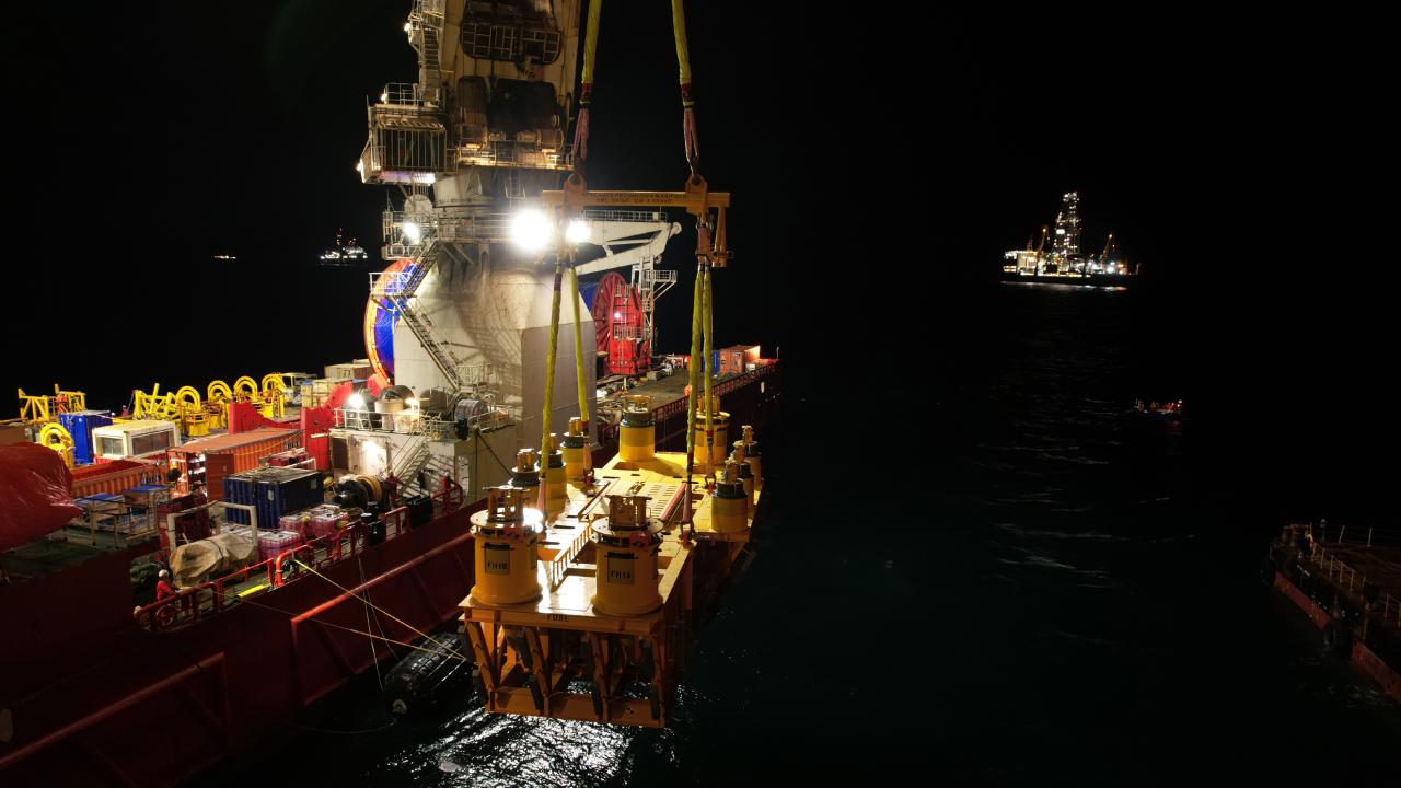 Karadeniz'de keşfedilen doğal gazı kuyulardan toplayıp ana boru hattına bağlayacak 280 tonluk "Peçenek" adlı dağıtım haznesi, denizin 2 bin 200 metre altına indirildi.