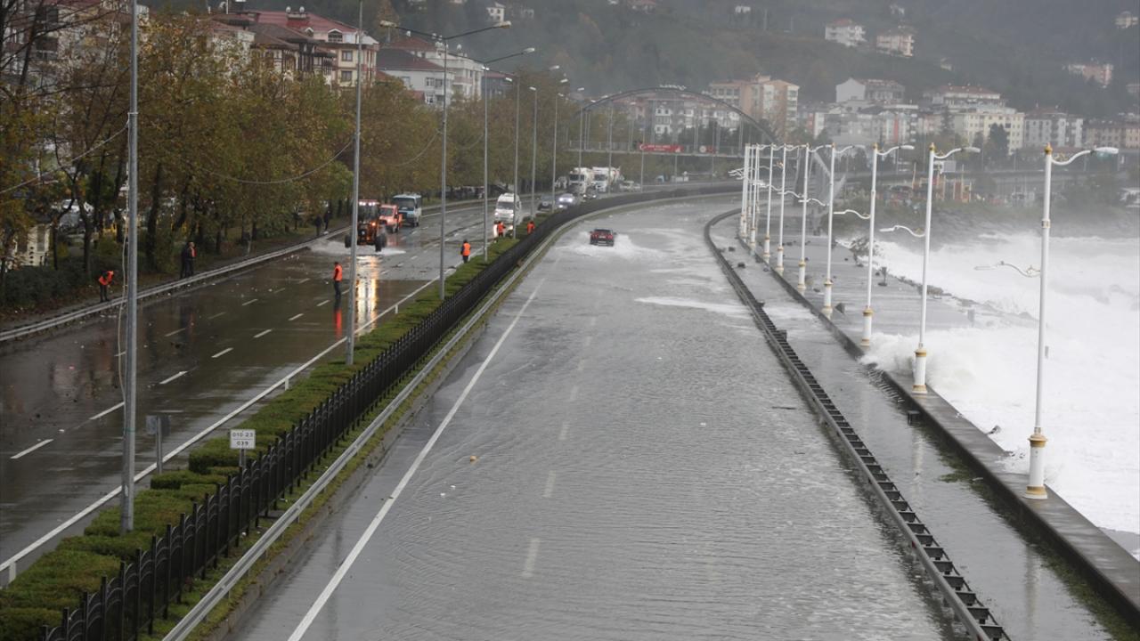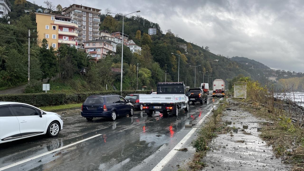 Fırtınanın etkisiyle oluşan dalgaların Karadeniz Sahil Yolu`na kaya parçaları taşıması sonucu çok sayıda araçta hasar oluştu.