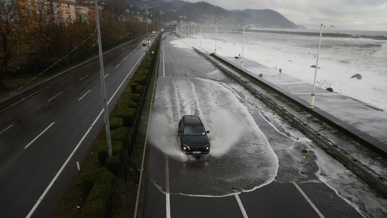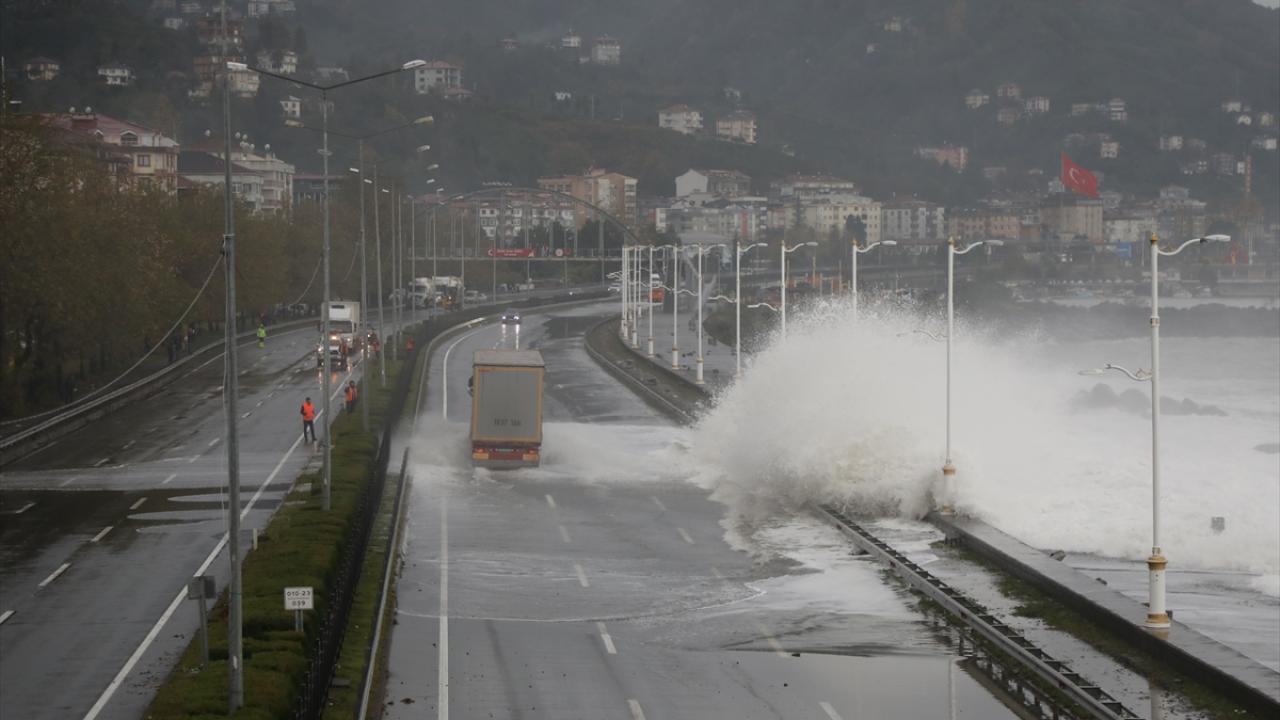 Rize'de fırtınanın oluşturduğu dev dalgalar nedeniyle Karadeniz Sahil Yolu Çayeli-Trabzon istikameti trafiğe kapatıldı.