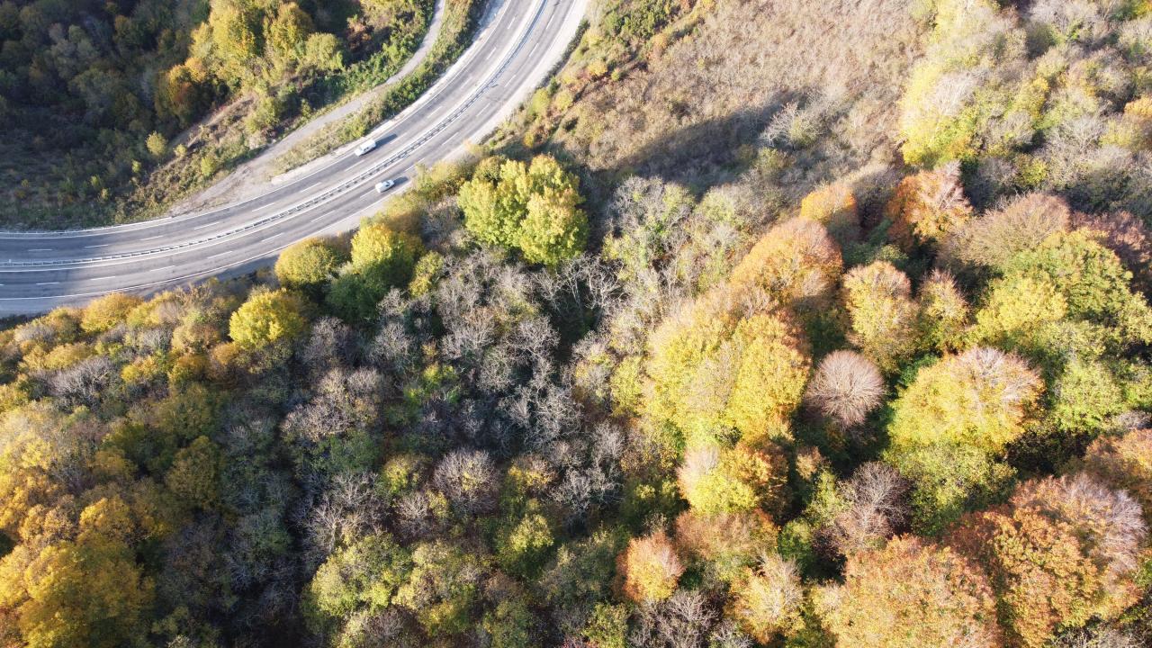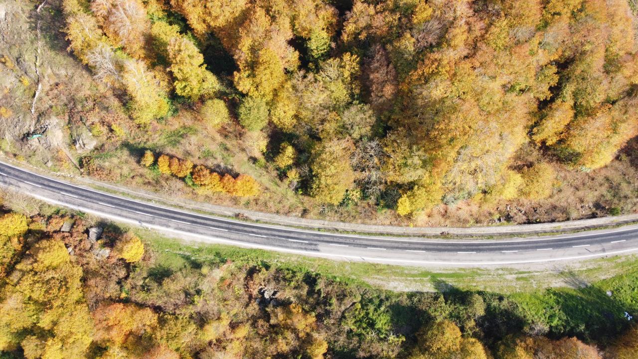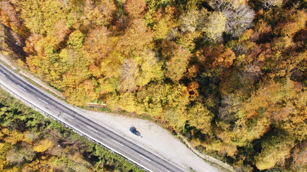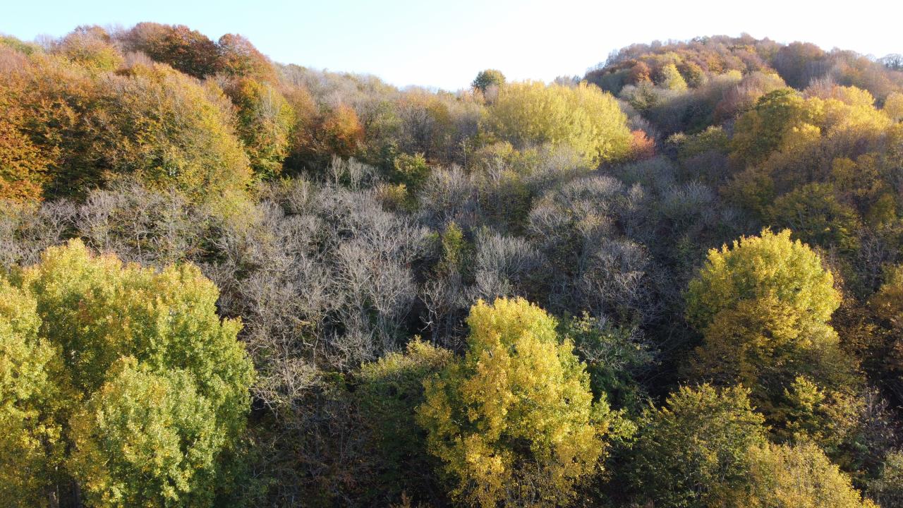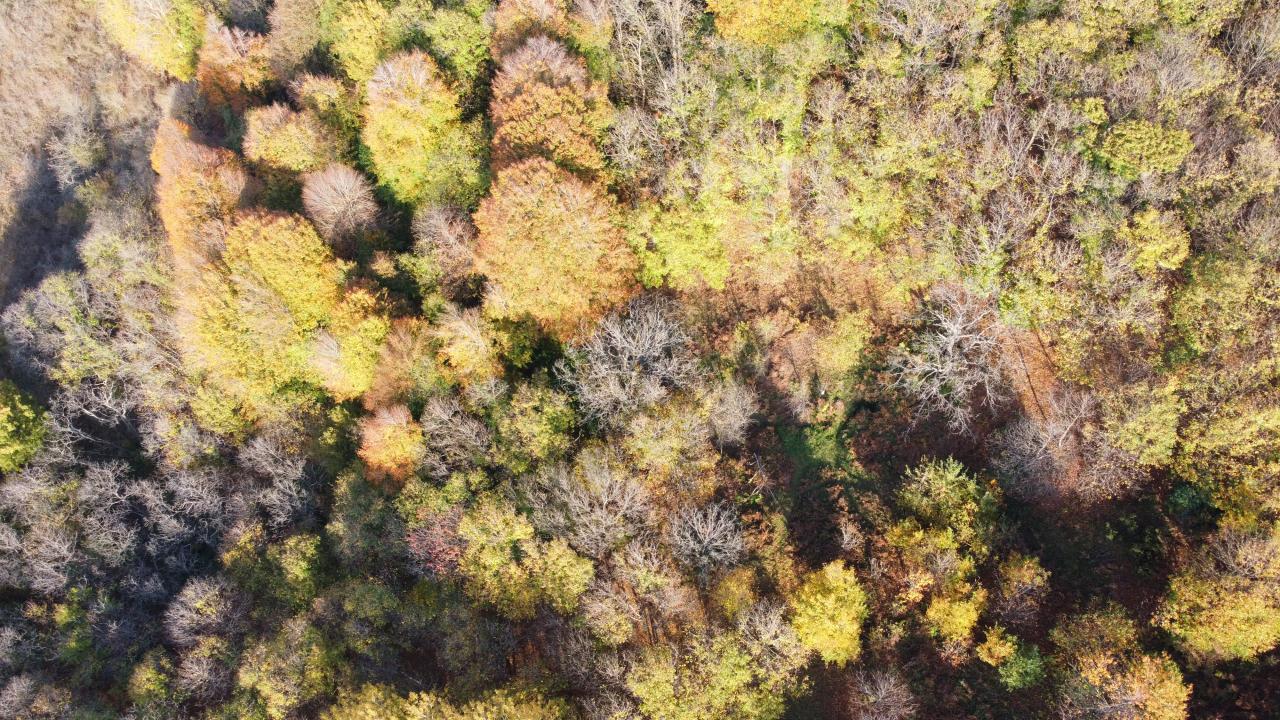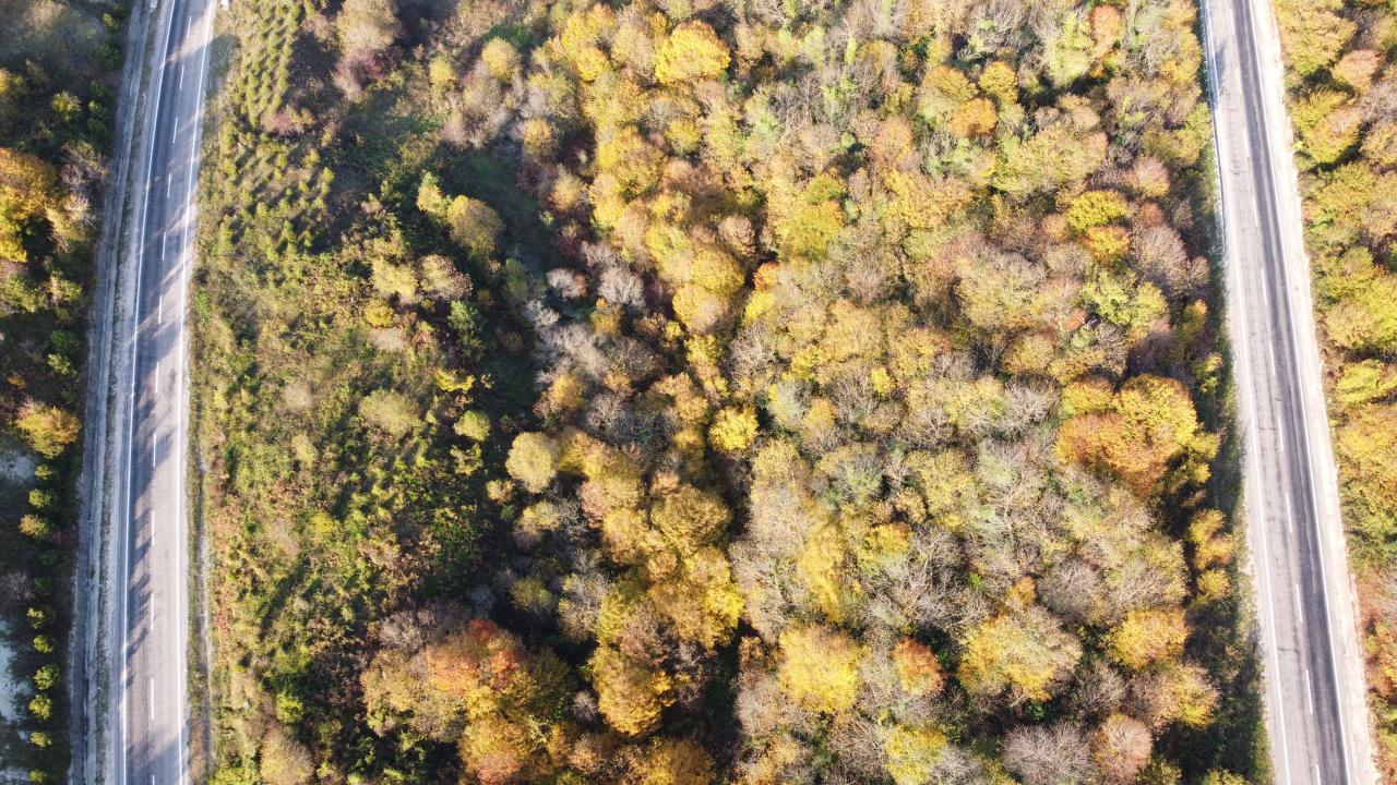 Yeşil, sarı ve kahverenginin onlarca tonunun bir arada buluştuğu ormanlardaki renklilik dronla havadan görüntülendi.