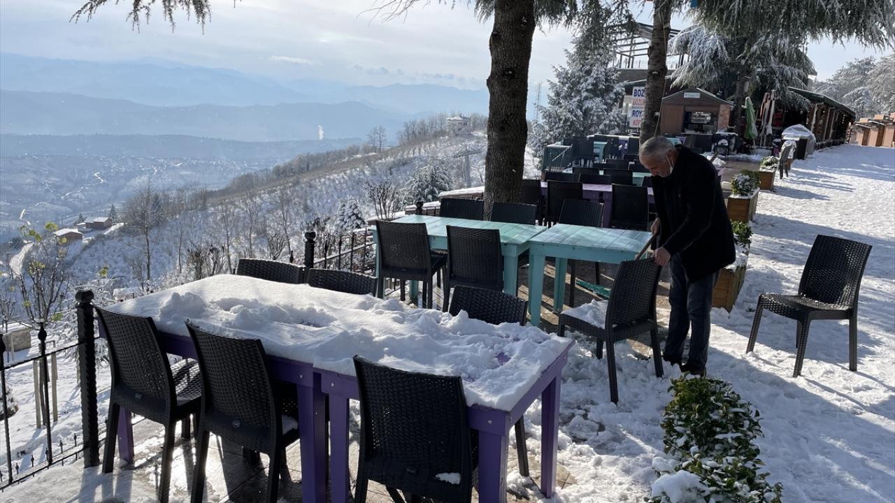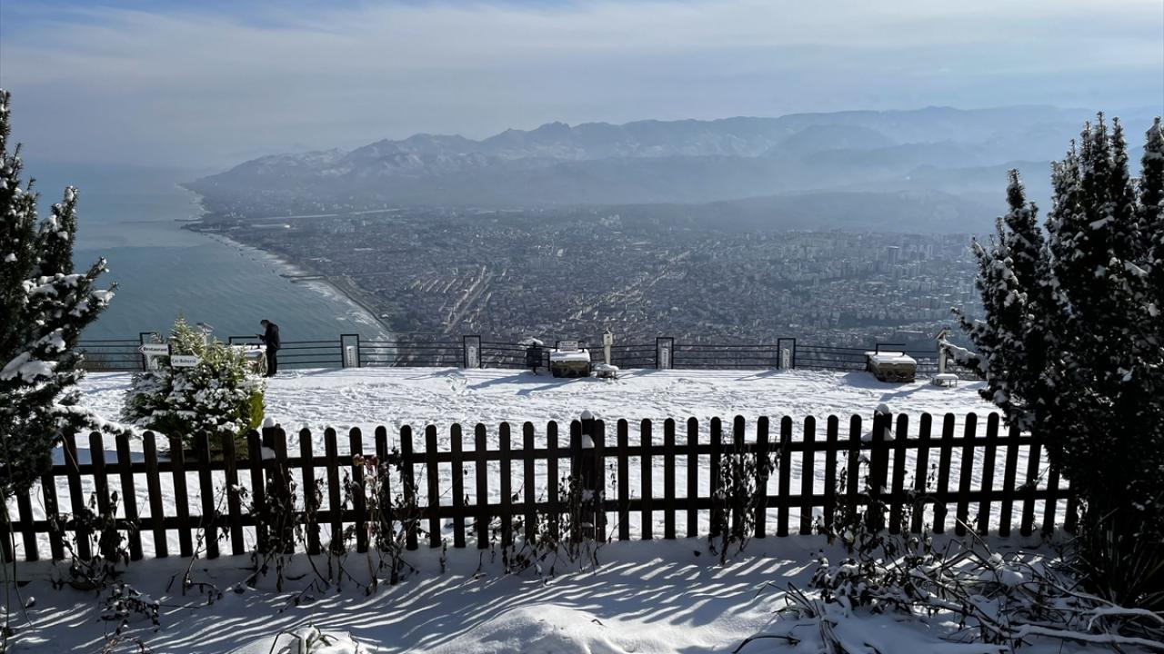 Öte yandan, kentin önemli turistik alanlarından 530 rakımlı Boztepe, kar yağışıyla beyaza büründü.