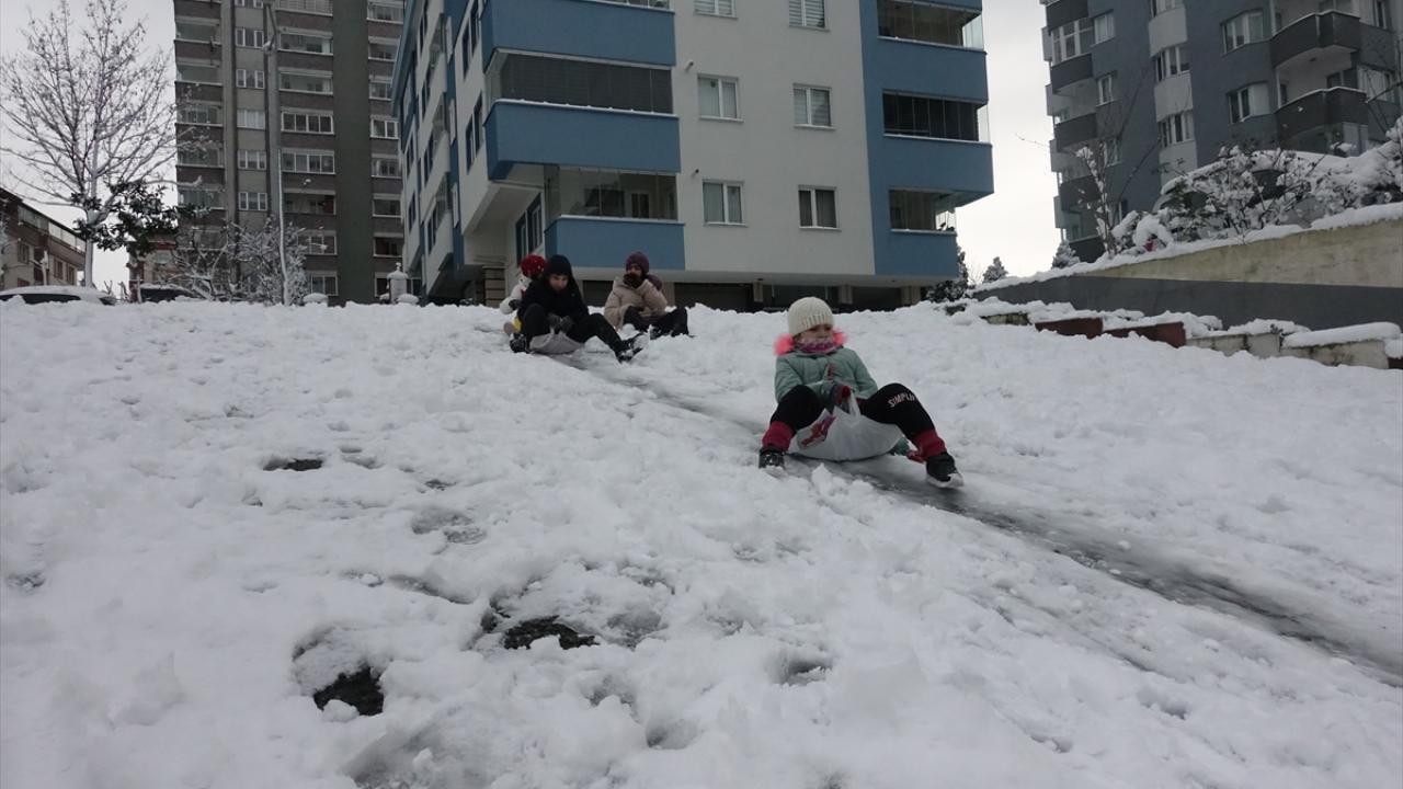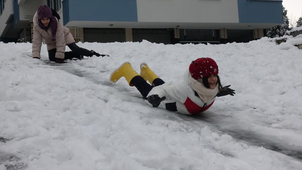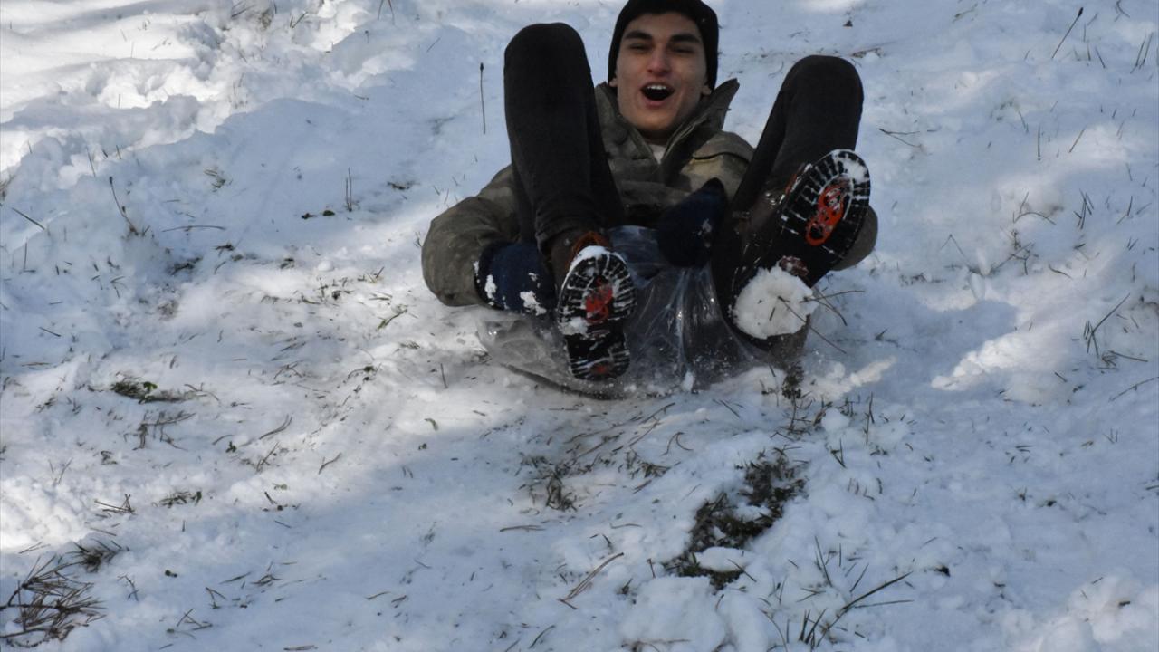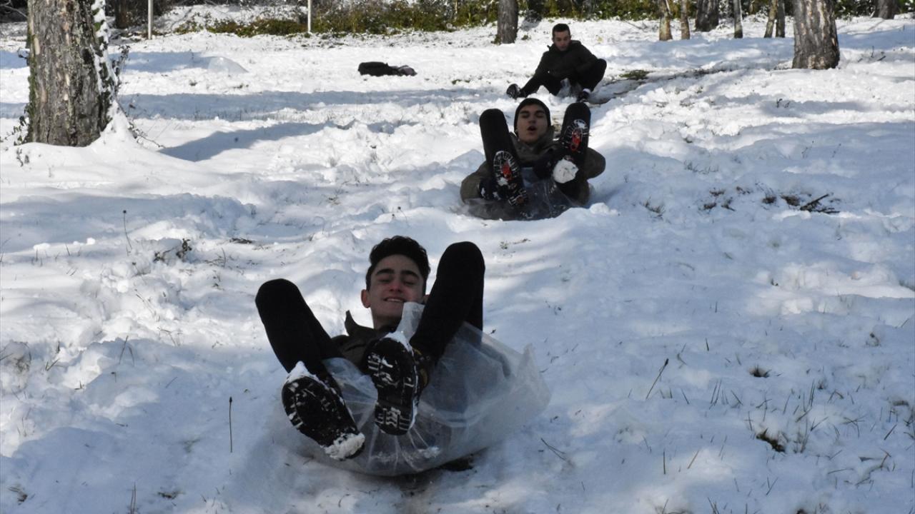 Lise öğrencisi Erkan Bayram, AA muhabirine, arkadaşlarıyla geldikleri Boztepe`de karda kayarak vakit geçirdiklerini söyledi.