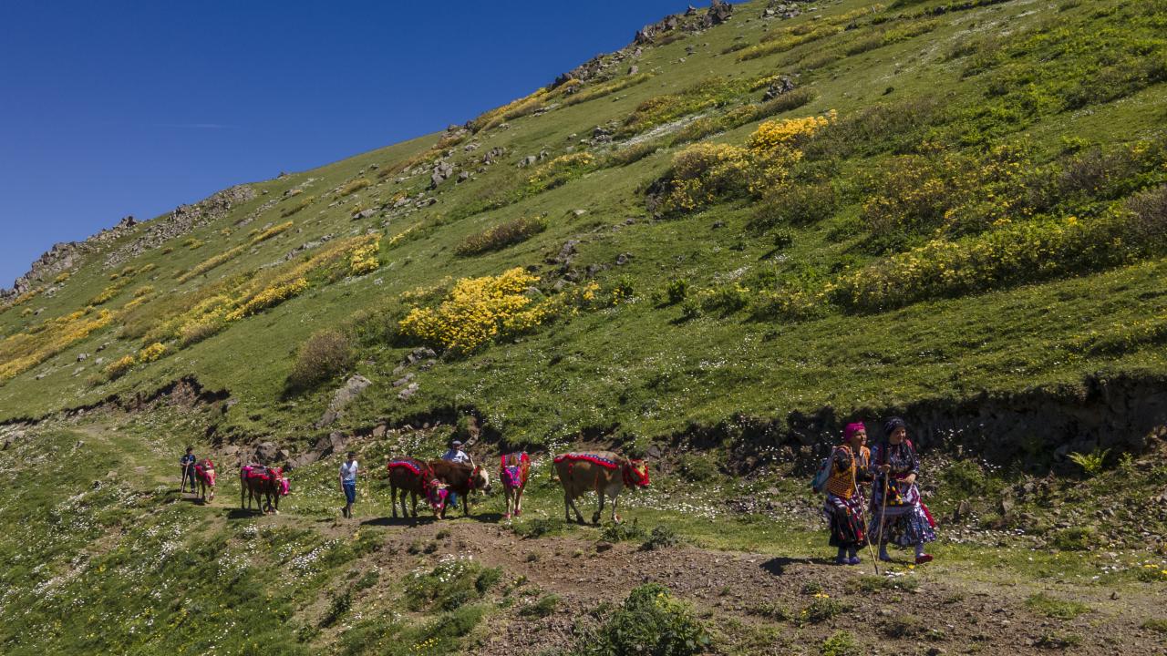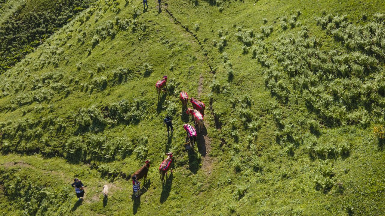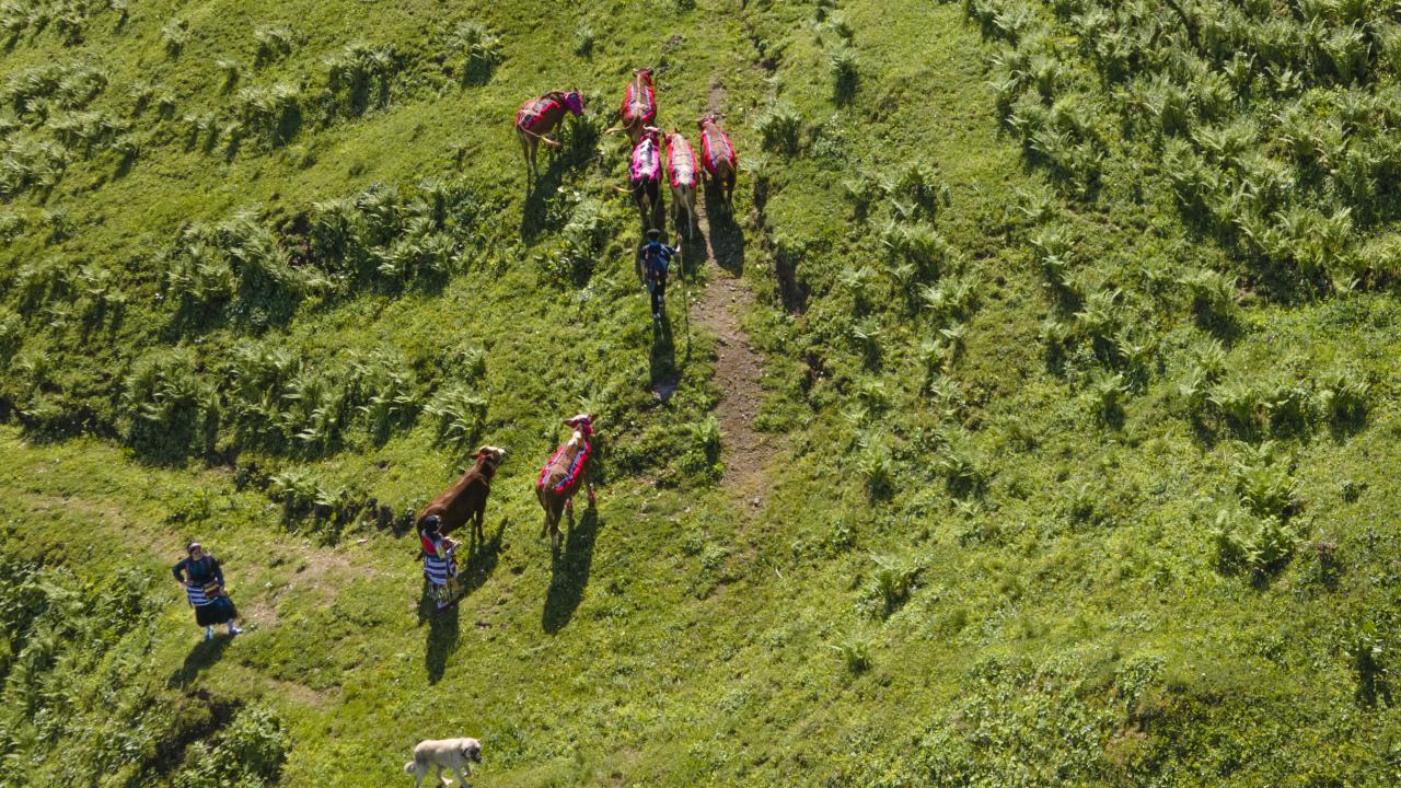 Gün doğumuyla yayla yoluna koyulan besiciler, zorlu mesaiye başlıyor.