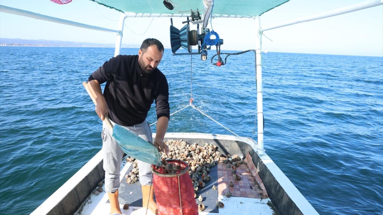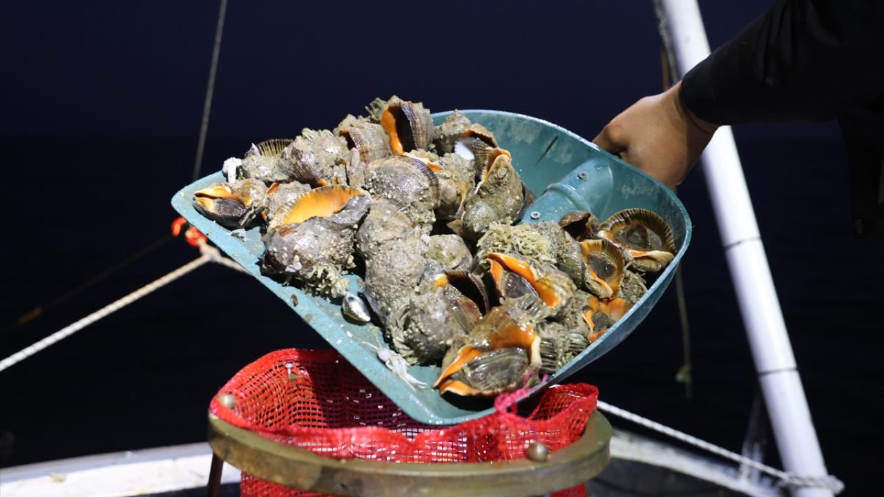 Deniz salyangozu toplamak için günün ilk ışıklarıyla denize açılan balıkçılar, algarna (çerçeve ve ağdan oluşan av aracı) ağlarıyla deniz tabanını tarıyor. Yaklaşık 15 saat süren zorlu mesainin ardından çıkarılan ürünler, büyüklük standartlarına göre ayrılıyor.