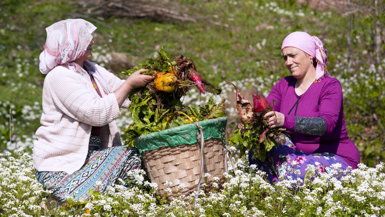 Pandemiye rağmen boş durmayan kadınlar; kışlık yiyecek ve yakacakları için zorlu doğa koşullarına aldırış etmeden sarp yamaçlarda arı gibi çalışıyor.