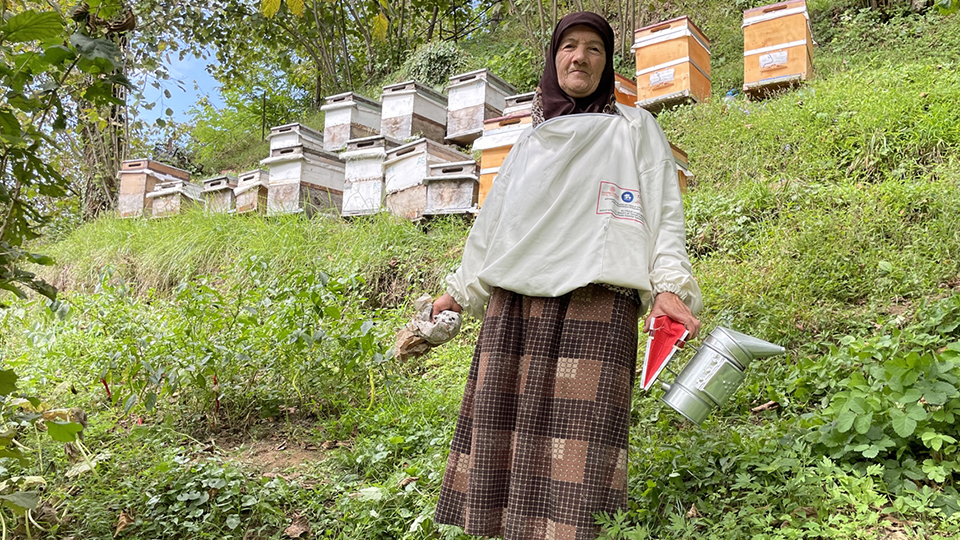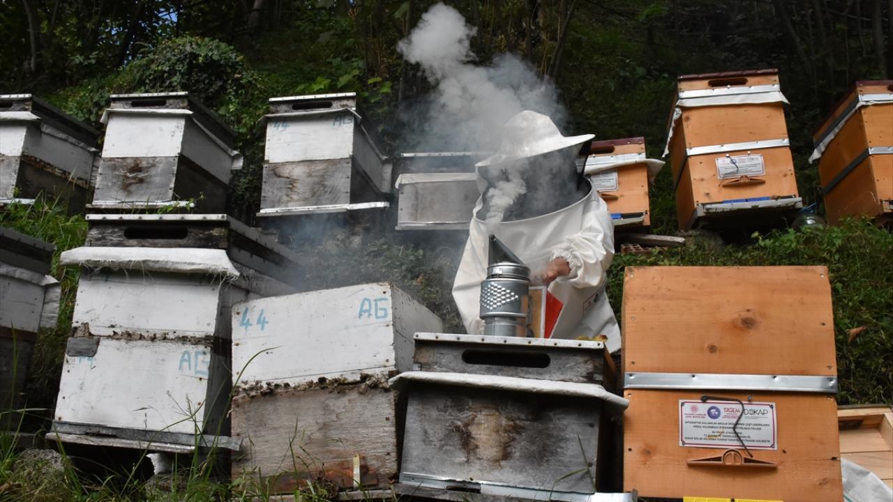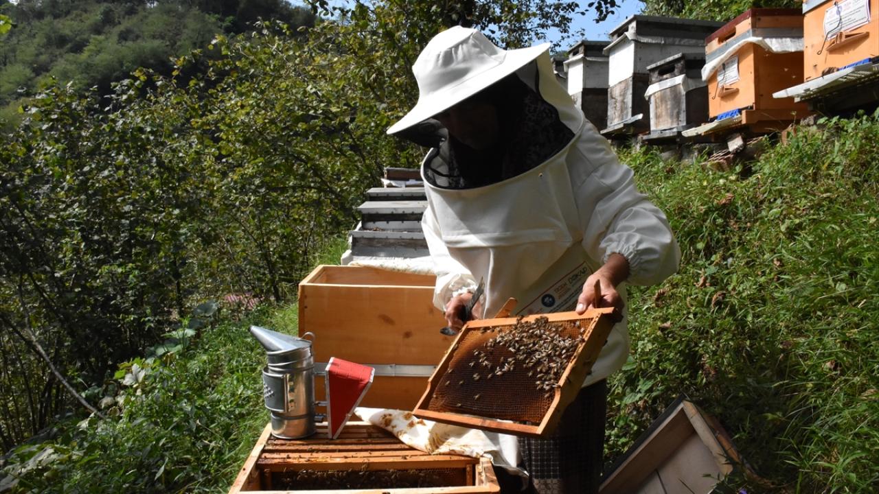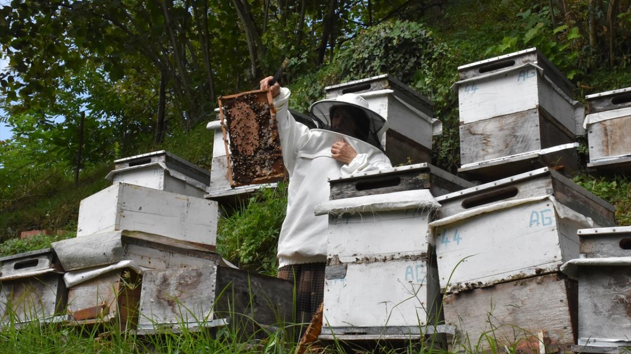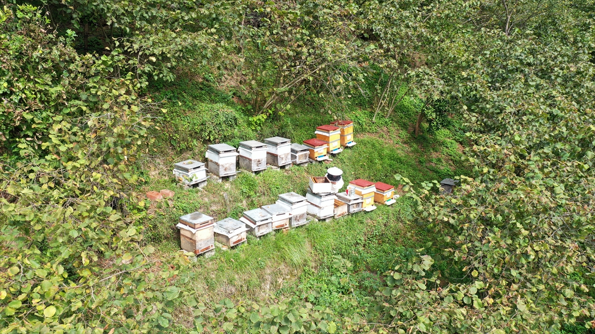 Fındık hasadının ardından arıların yer aldığı 18 kovanın bakımı için kolları sıvayan Sarıkaya, oğluna 10 yaşındayken bir akrabalarının arı hediye ettiğini söyledi.