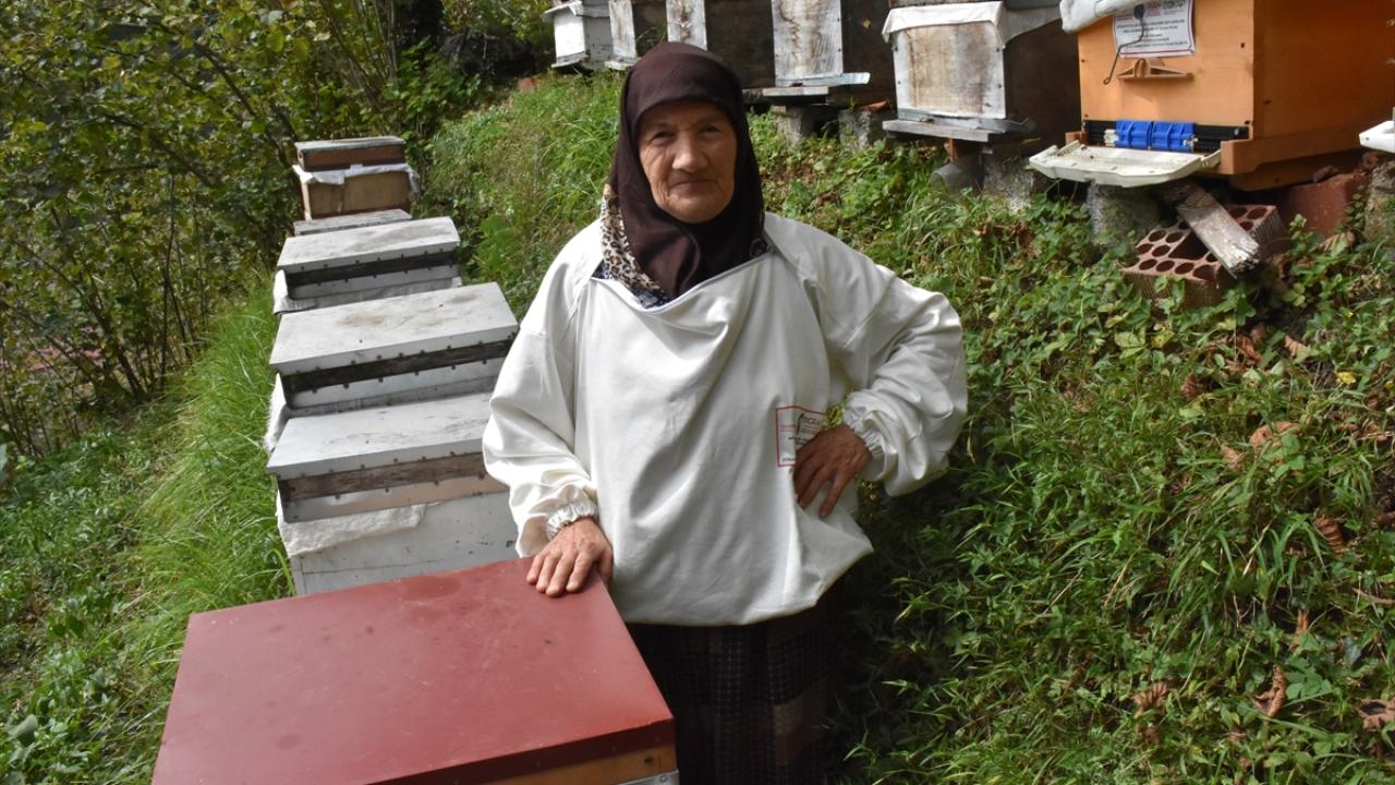 İlçenin Bolaman Mahallesi`nde eşiyle yaşayan, iki çocuk annesi Sarıkaya, yaklaşık 38 sene önce oğluna hediye edilen 4 arıyla üretime başladı.