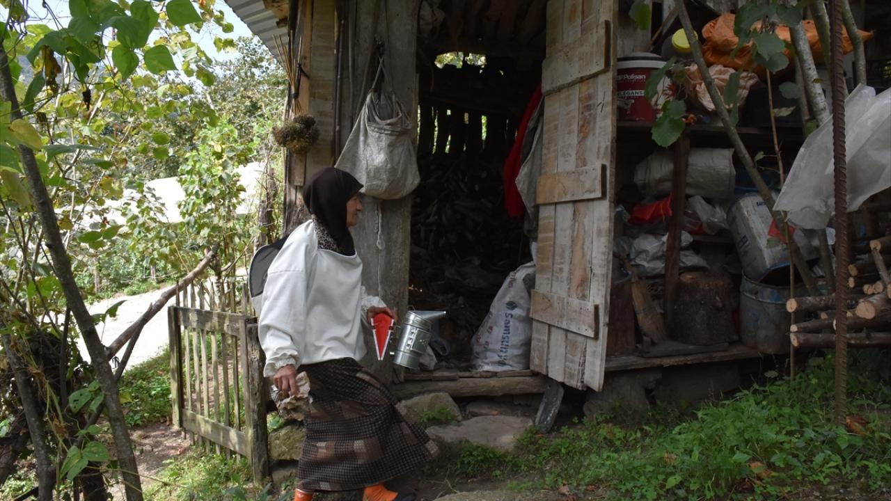 Fındık hasadıyla ilgili işleri eşiyle yaptıklarını belirten Sarıkaya, "Eşim gurbette çalışıyordu, buraya geleli 10 sene falan oldu. O zamana kadar burada tek başımaydım. Çocuklar okuldaydı. Hem pazara gittim hem kurbanlıkları büyüttüm, ineğime baktım. Arıma baktım, sattım. Bağ bahçe her şeyi yaptım. Allah güç verince oluyor işte." ifadelerini kullandı.
