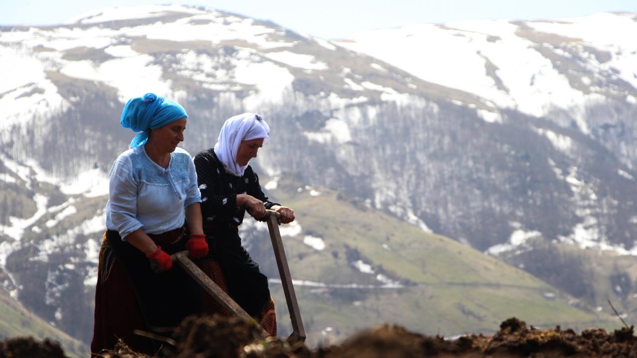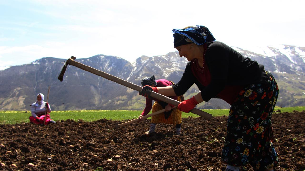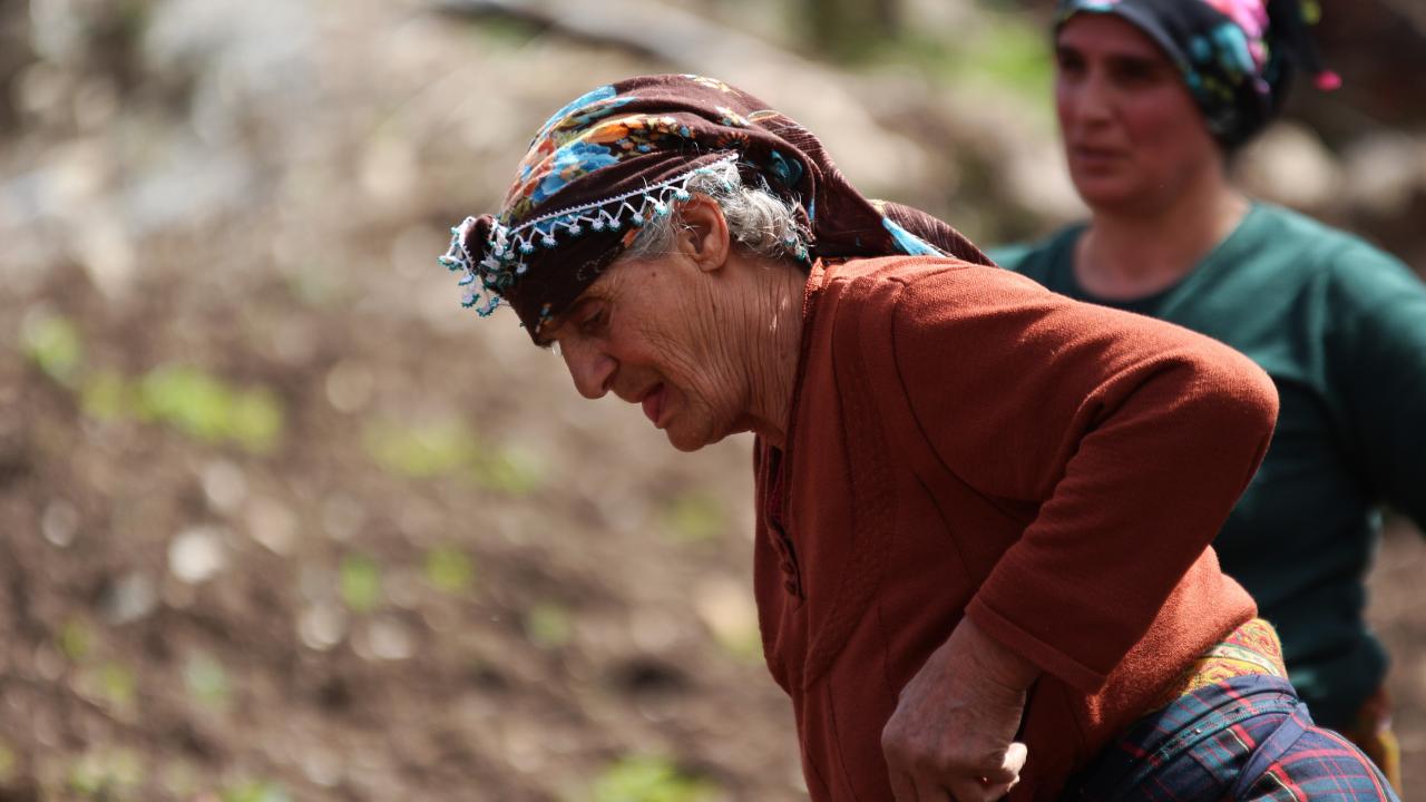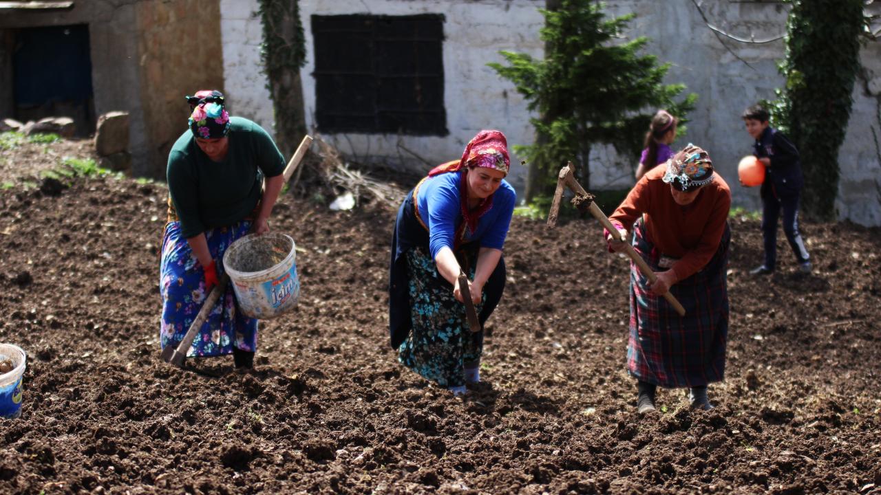 Yaklaşık 50 yıldır tarlada çalıştığını belirten Ayşe Kutan çalışmayı sevdiğini ifade ederek “Yaşım 65, yaklaşık 50 yıldır tarladayım. İki oğlum var. Şimdi patates dikme zamanı. Mayıs aylarında yaylalara göç edeceğiz. Yaylada 4 ay durup geri döneriz. Mısır, çayır biçeriz. Bahçe işi çok zor mecburiyetten yapıyoruz. Bu işi en iyi köylü kadınlar yapar, şehir kadınları pek yapamaz. Bende bel ağrısı, diz ağrısı var ayakta zor durmamıza rağmen yapıyoruz. Yaklaşık 10 gün tarla kazıma işlemi sürüyor. Evde duramıyorum çalışmayı seviyorum” dedi.