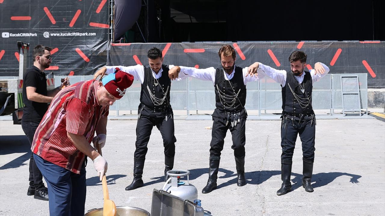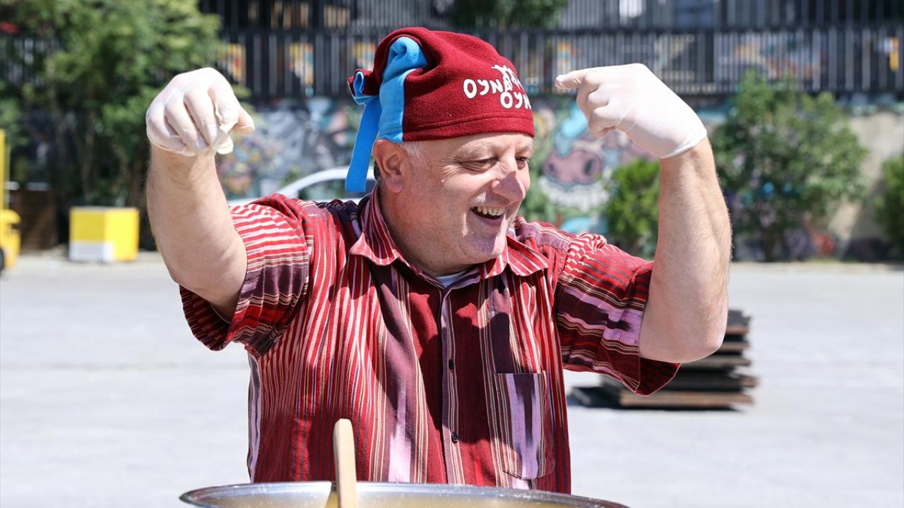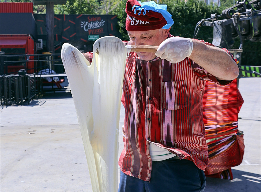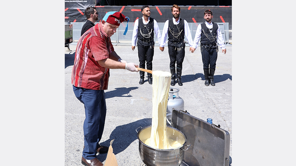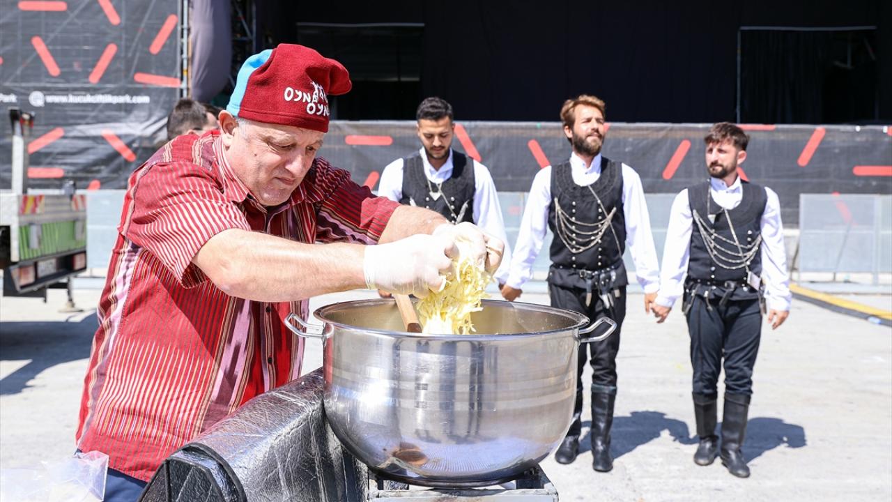 Şişli'de Adem Kılıç, 18 Eylül'de düzenlenecek "Maçka'da Buluşalım - Bir Karadeniz Şöleni" festivali öncesinde, Maçka'daki Küçükçiftlik Park'ta, Karadeniz mutfağının vazgeçilmezleri arasında yer alan kuymakta rekor denemesi yaptı.