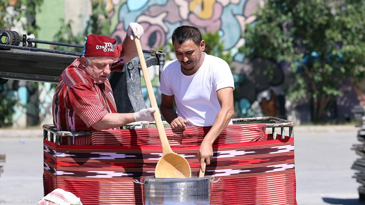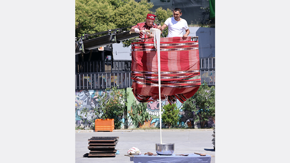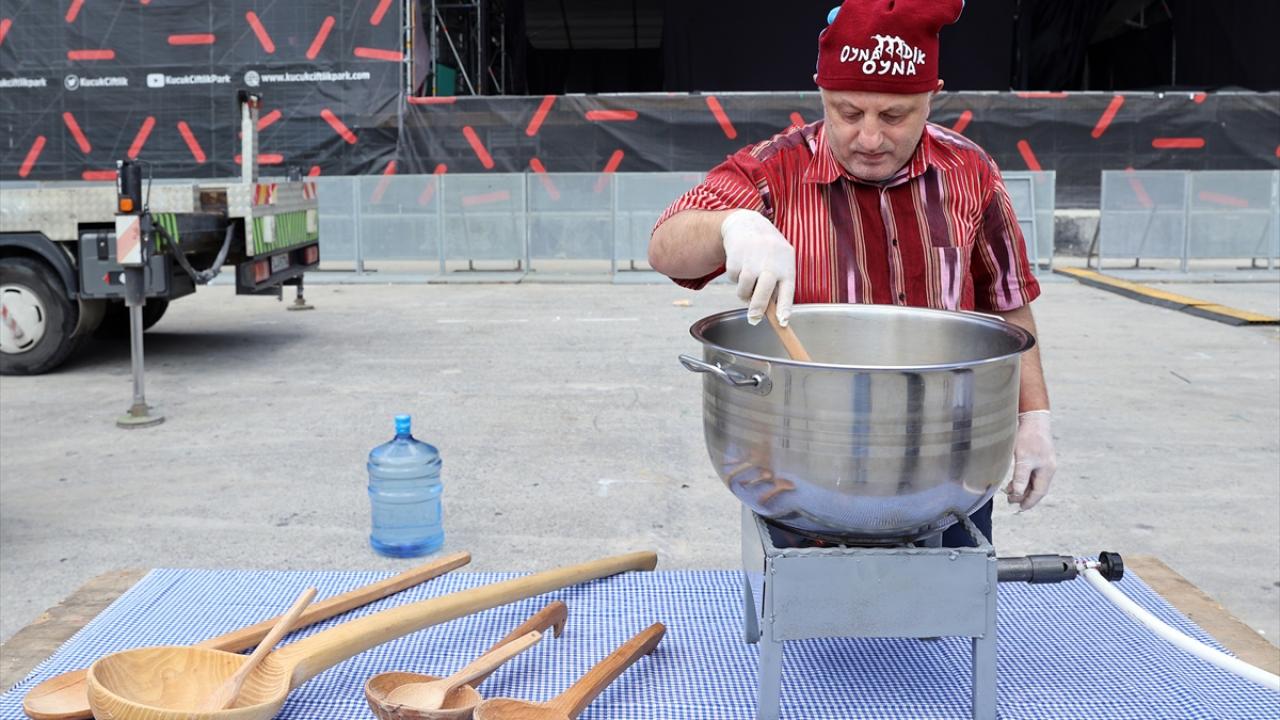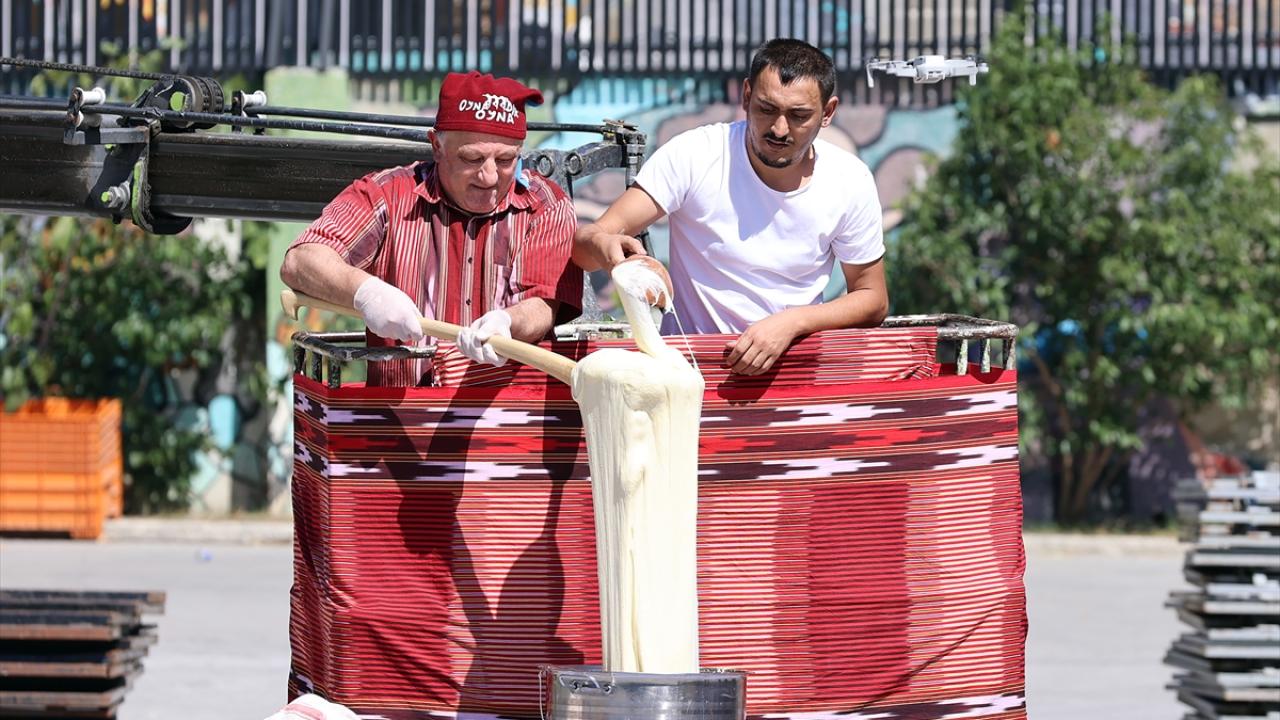 Şişli'de Adem Kılıç, 18 Eylül'de düzenlenecek "Maçka'da Buluşalım - Bir Karadeniz Şöleni" festivali öncesinde, Maçka'daki Küçükçiftlik Park'ta, Karadeniz mutfağının vazgeçilmezleri arasında yer alan kuymakta rekor denemesi yaptı.