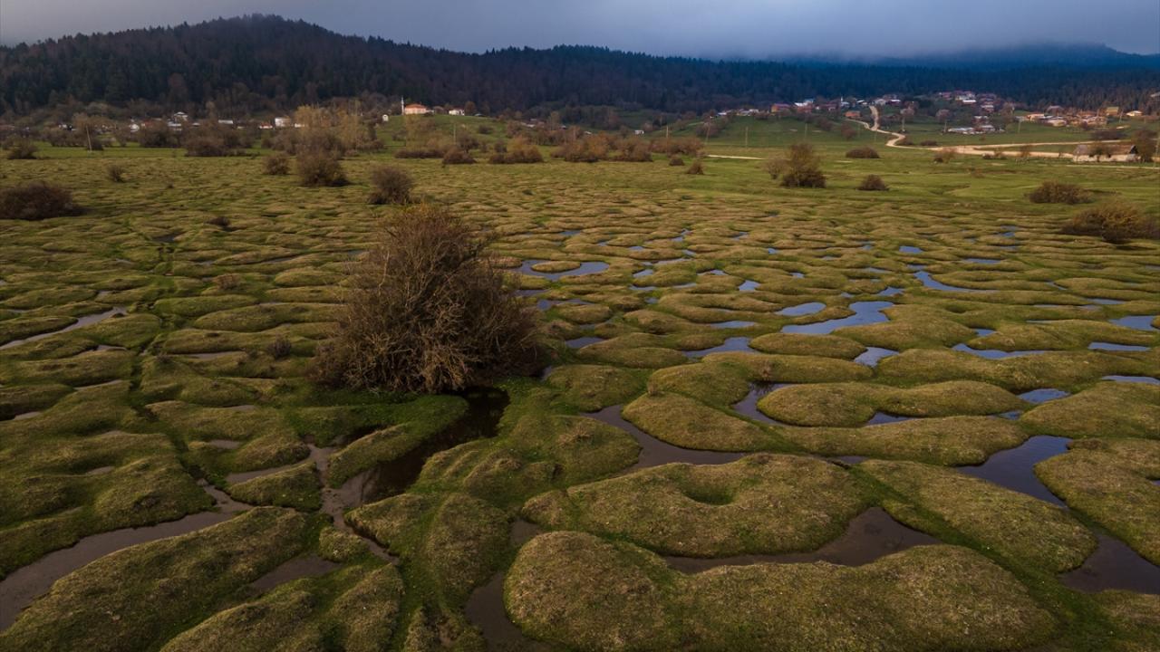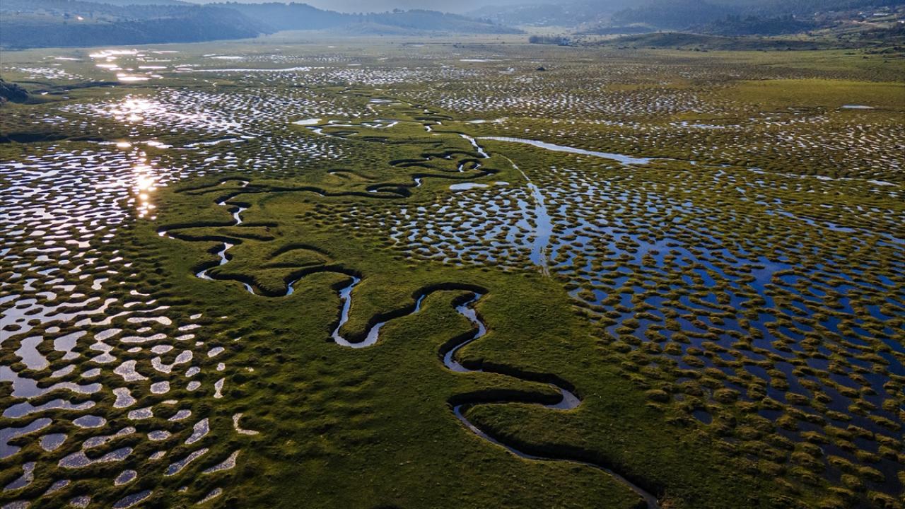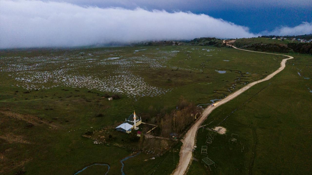 Yayladaki içi su dolu menderesler, baharın gelişi ve doğanın canlanmasıyla güzel görüntü oluşturuyor.