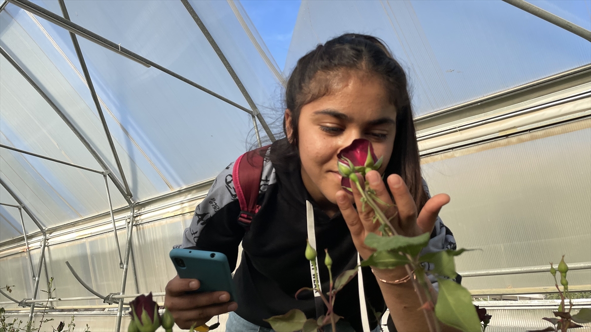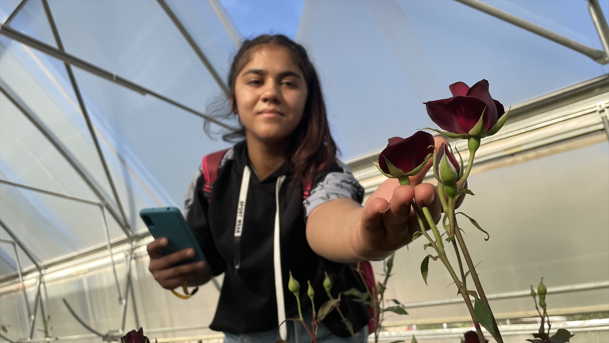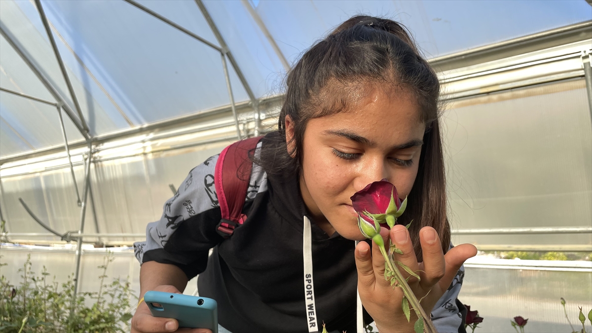 Simsiyah rengi ve kokusuyla ilgi gören karagül, seralardaki görevliler tarafından çeşitli alanlarda kullanılması amacıyla dallarından kesilerek hasat ediliyor.