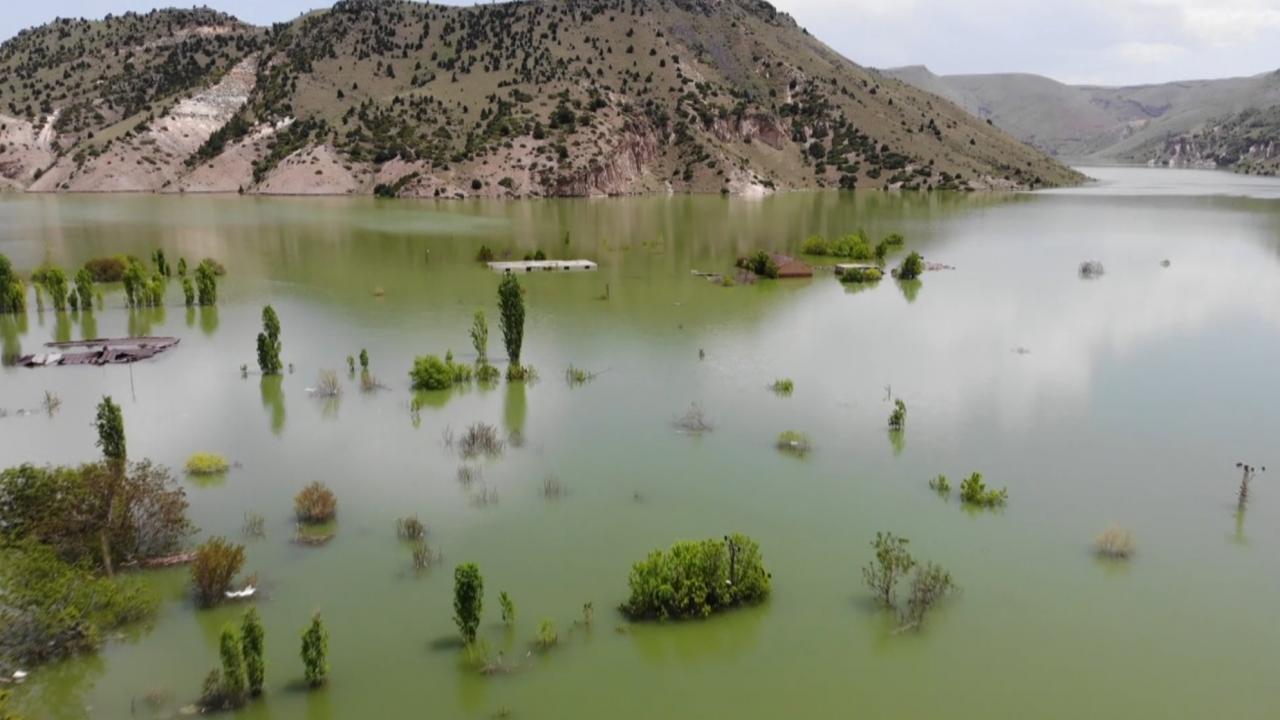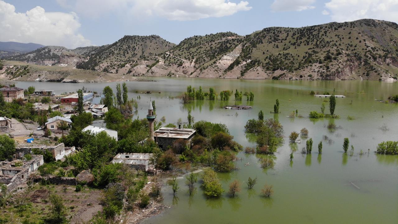Karakurt Barajı gölünde boşaltılan evler sular altında kaldı