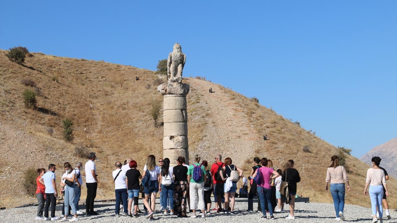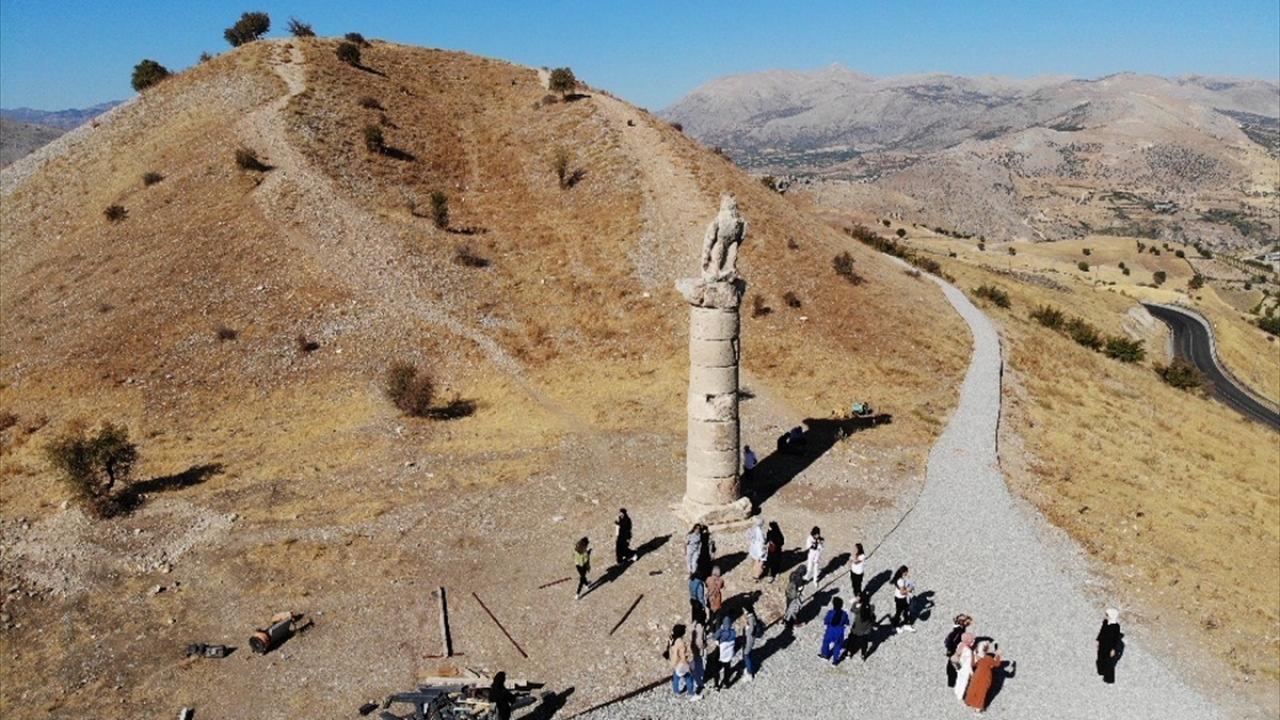 "Doğu sütun üstünde aslan ve kartal heykel kalıntıları, batıdaki sütunun üstünde tokalaşma steli, yerde aslan heykeli bulunuyor. Karakuş Tümülüsü, Nemrut Dağı giriş noktası olarak belirlenmiştir. Karakuş Tümülüsü`ne günlük bini aşkın ziyaretçi geliyor. Bu çalışmalar bittiğinde bu sayının çok büyük rakamlara ulaşacağını beklemekteyiz."