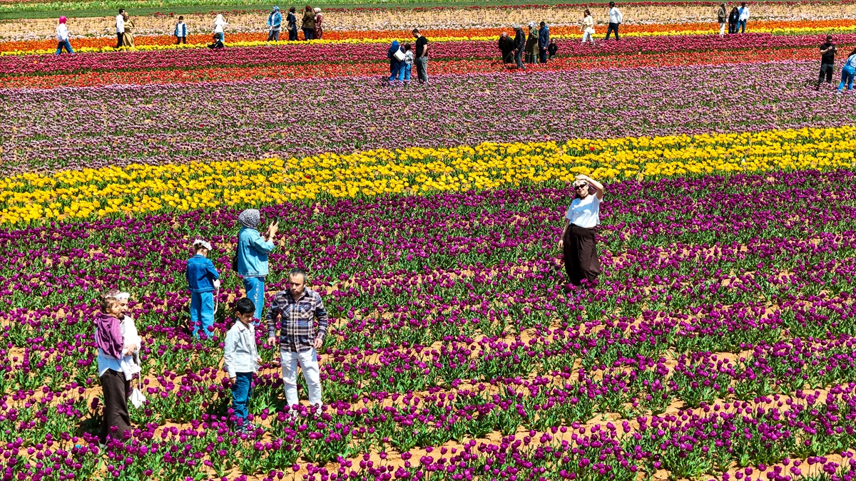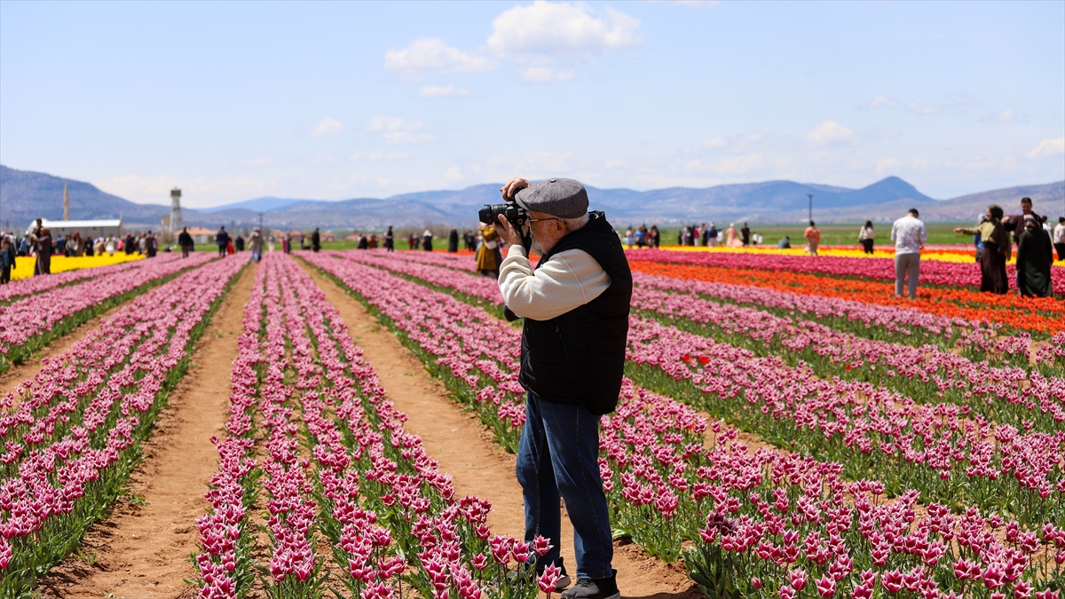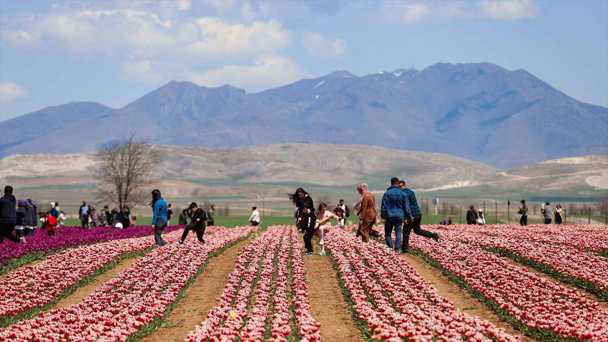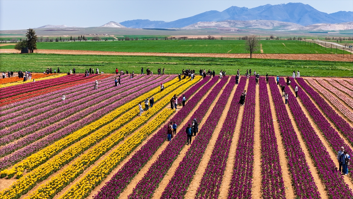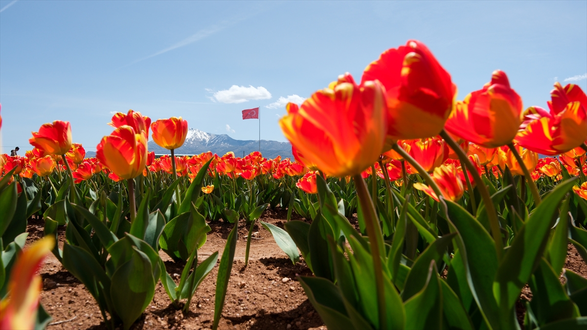 Karaman'da baharın gelişiyle açan lale bahçesi, meraklıları için doğal bir stüdyoyu andırıyor.