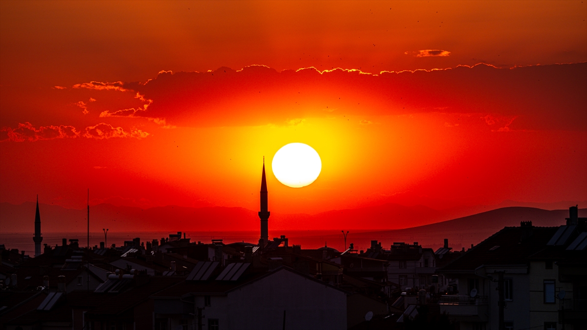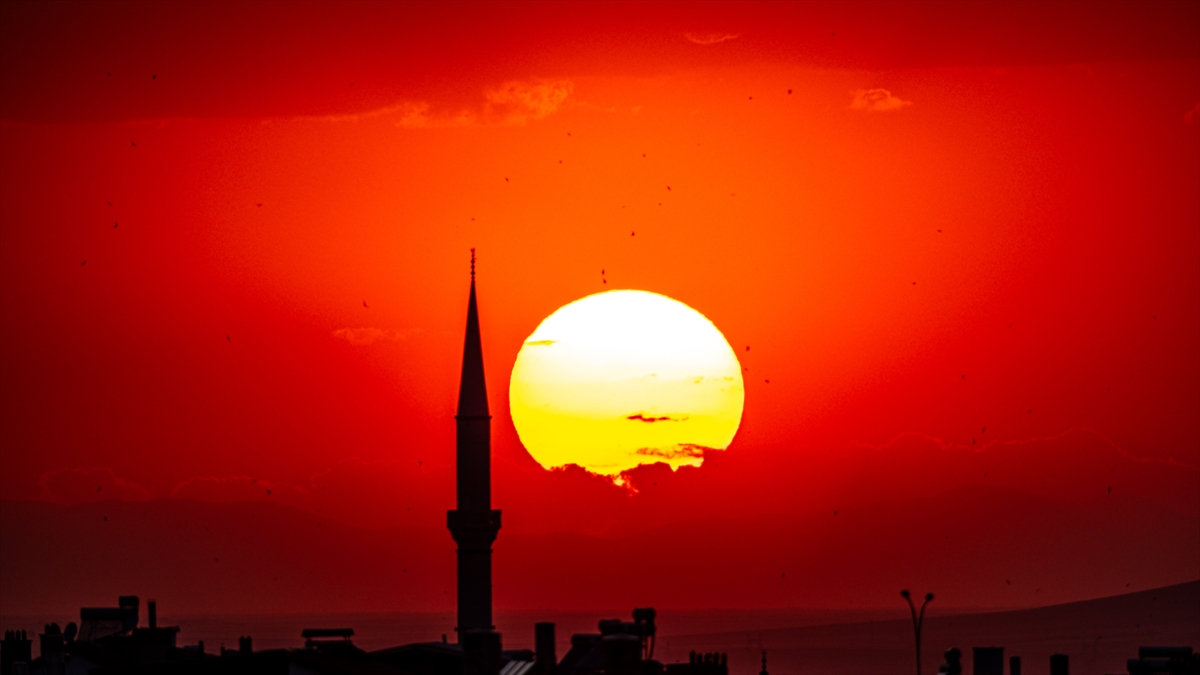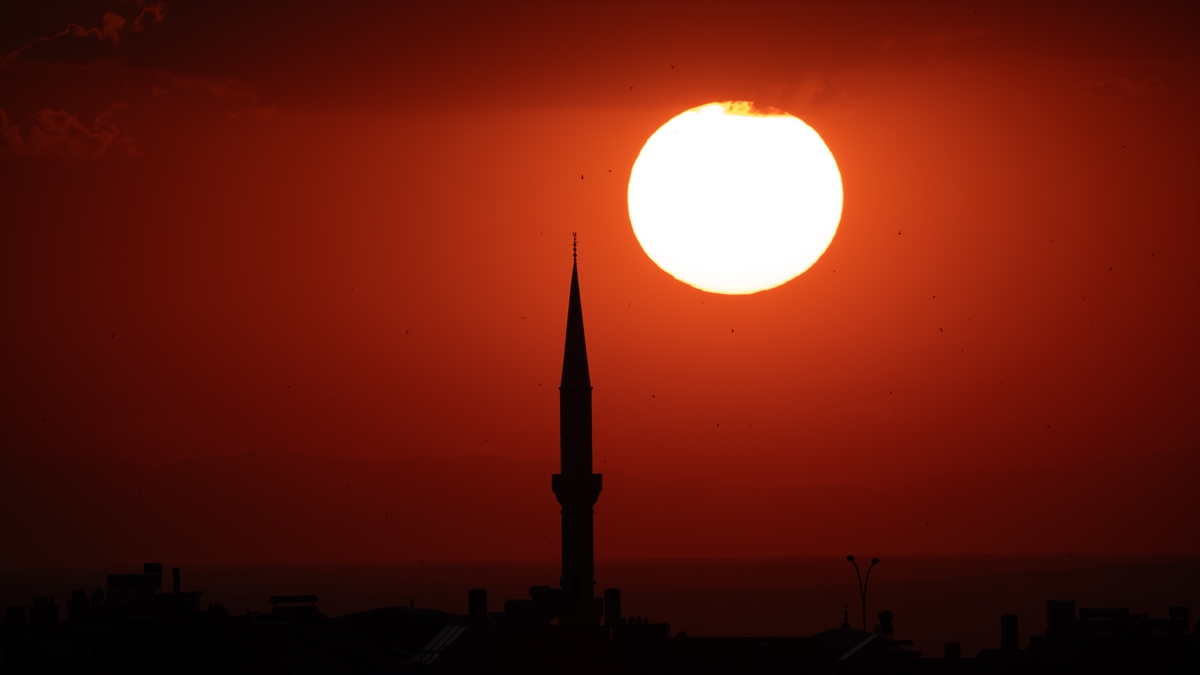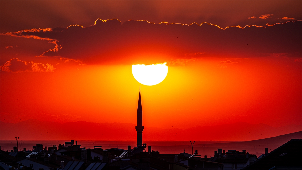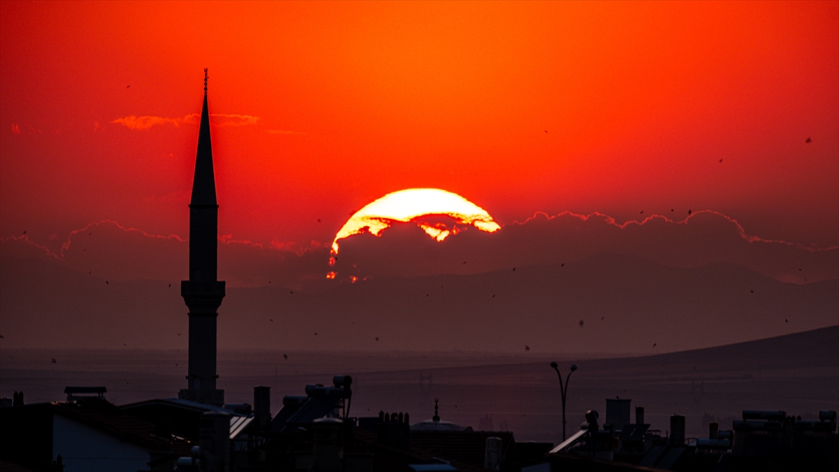 Karaman'da gün batımında oluşan kızıllık güzel görüntü oluşturdu.