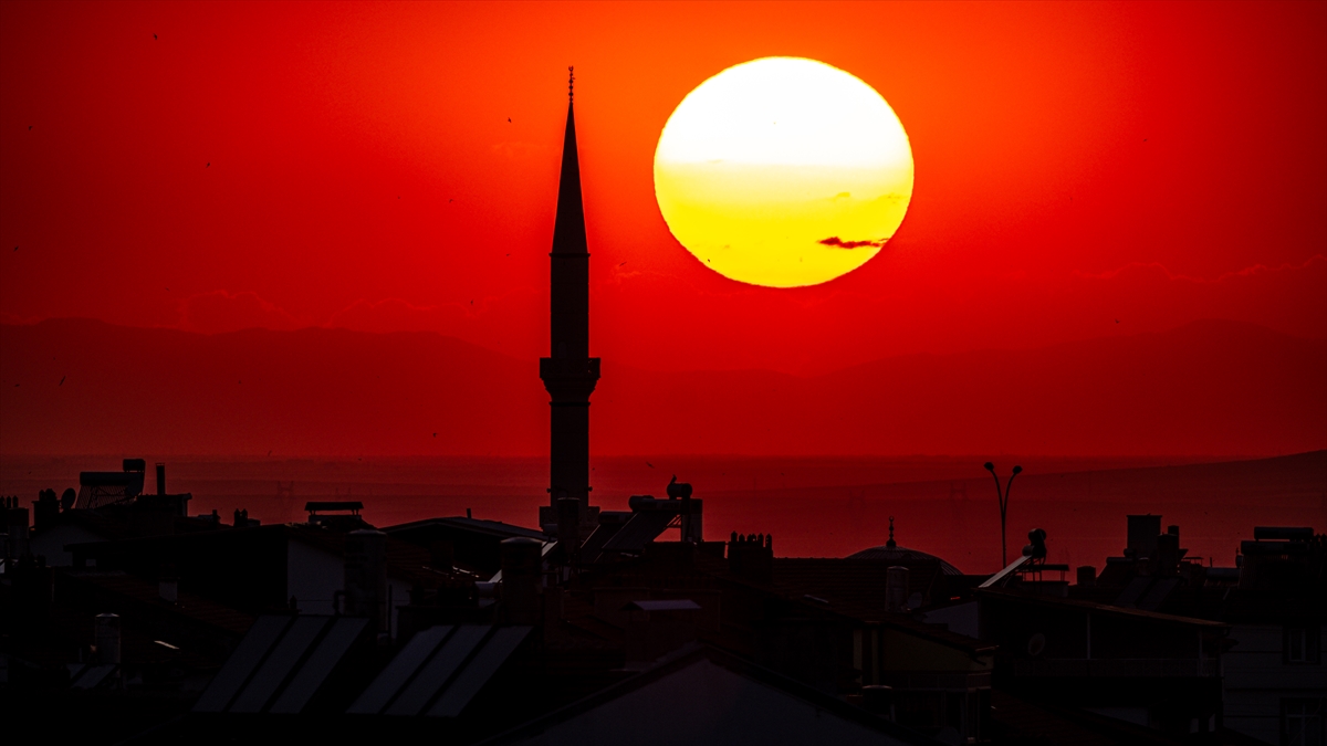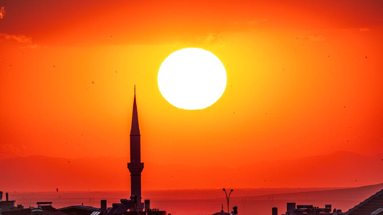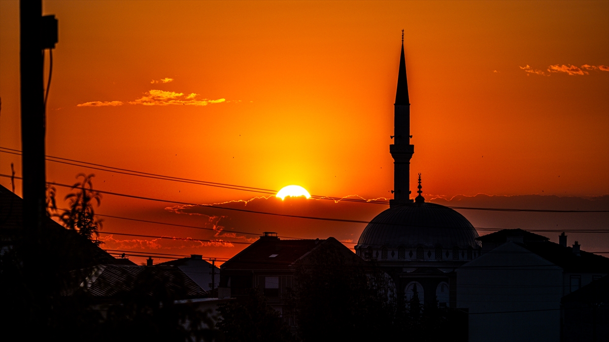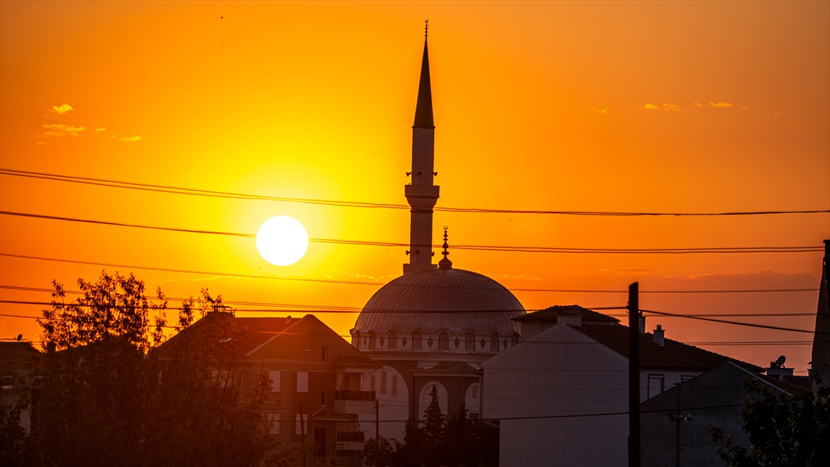 Karaman'da gün batımında oluşan kızıllık güzel görüntü oluşturdu.