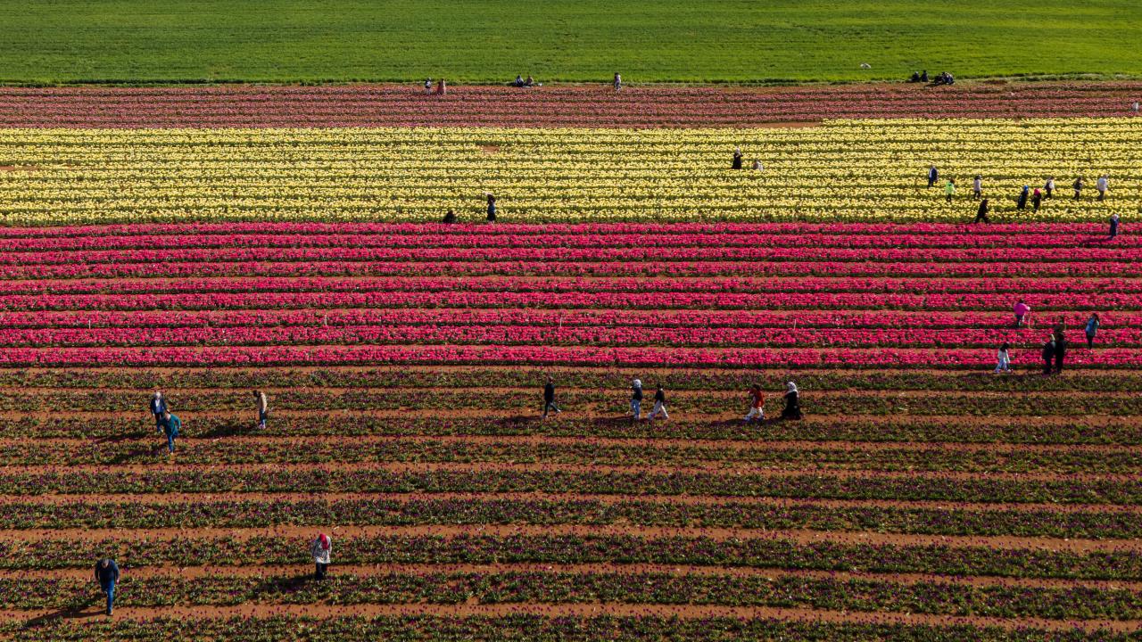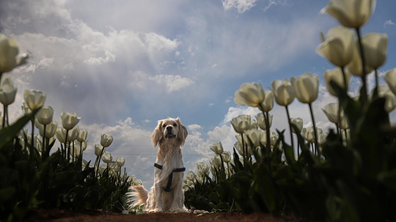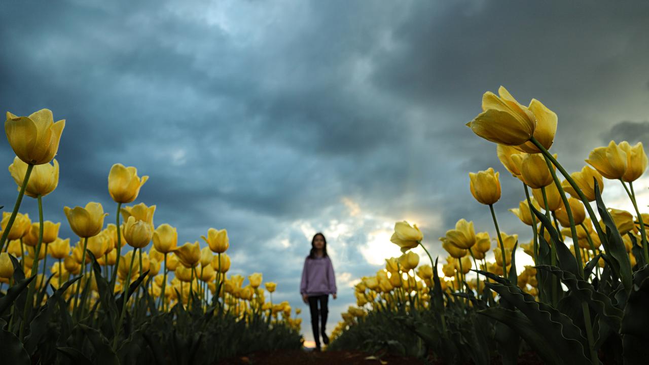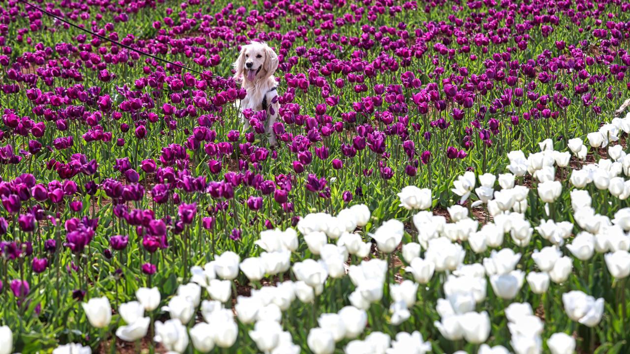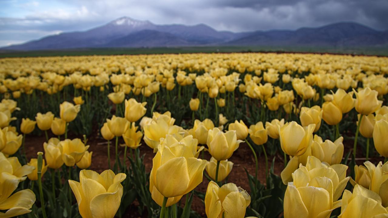 Lalelerin açmasıyla yeryüzünde bir gökkuşağını andıran 50 dekarlık bahçe, bu yıl ziyaretçilere kapısını 15 Nisan`da açtı.