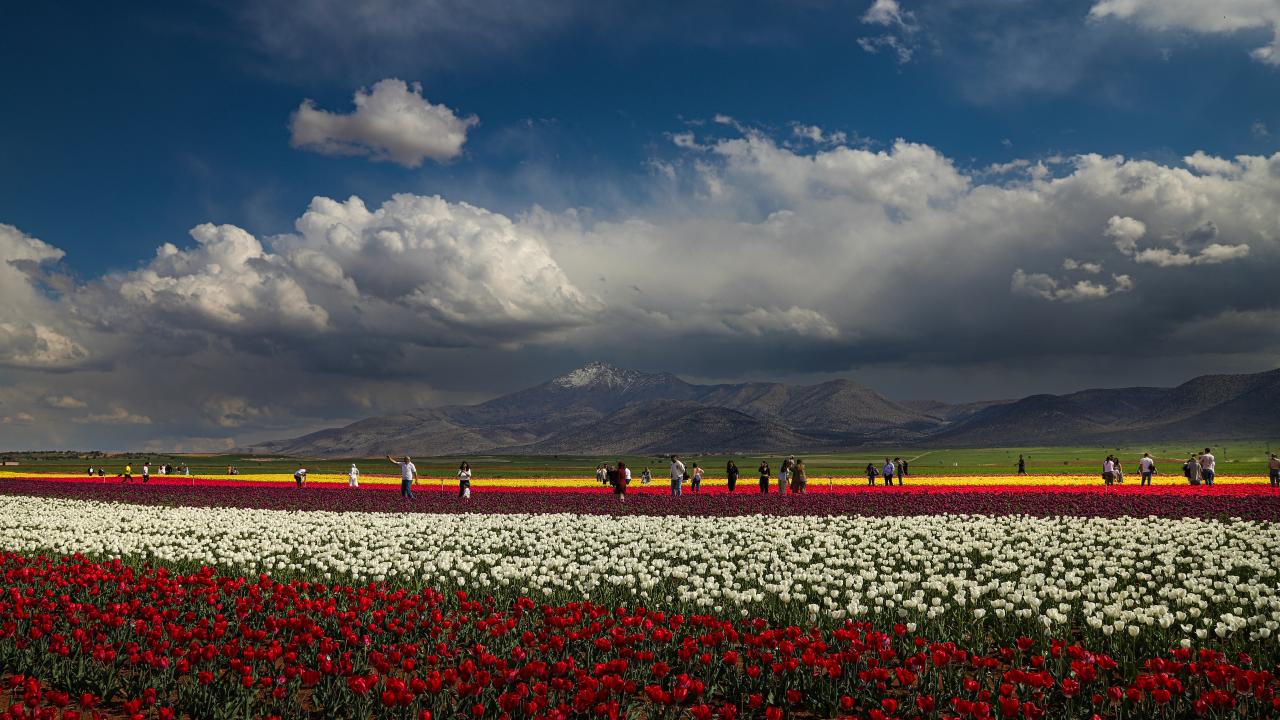 Karaman'daki lale bahçesi bayram ziyaretçileriyle hareketlendi