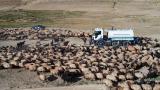 Susuzluktan bitkin düşen koyunlara tankerlerle su taşıdılar