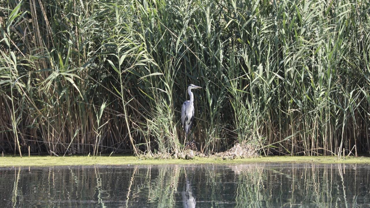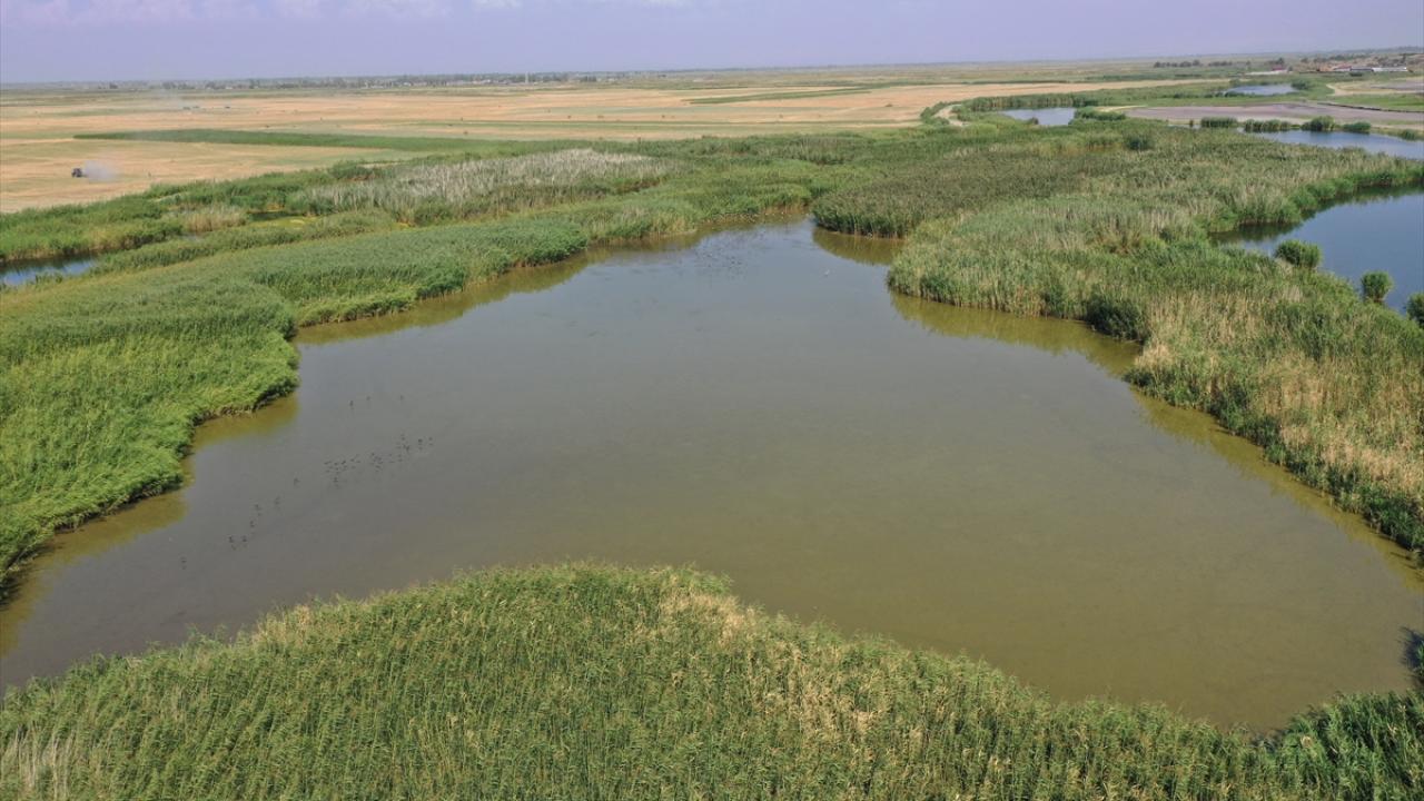 Milli park içindeki Karasu Sulak Alanı`nın sığ sulardan oluşan bazı bölümlerinde kuraklığın etkisi görülüyor.