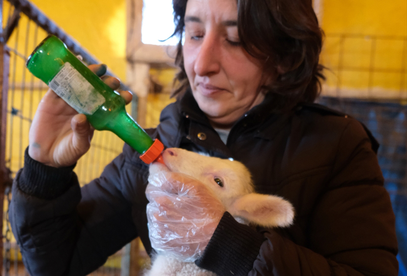 Sabahın ilk ışıklarıyla uyanıp koyunların yanına koştuklarını dile getiren Güneğe, "Kalkıyoruz yemimizi hazırlıyoruz, koyunlara dağıtıyoruz, doğum vakti ise koyunları içeriye alıyoruz." ifadelerini kullandı.