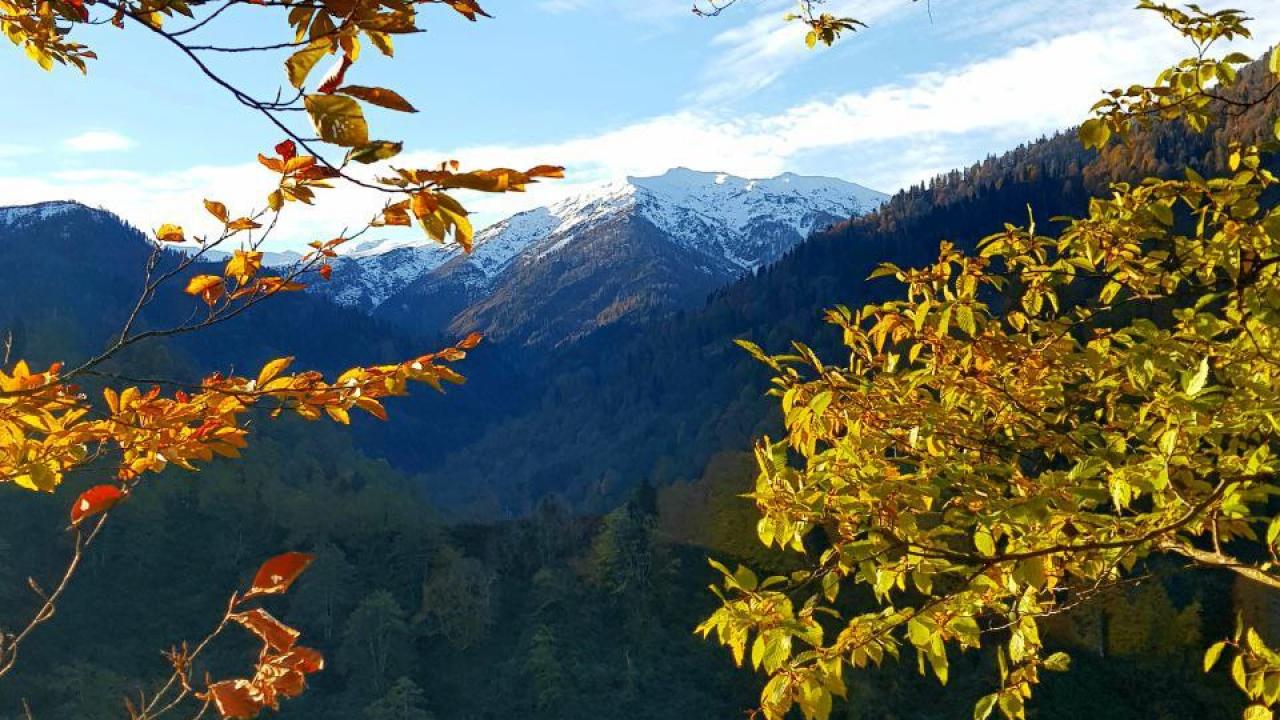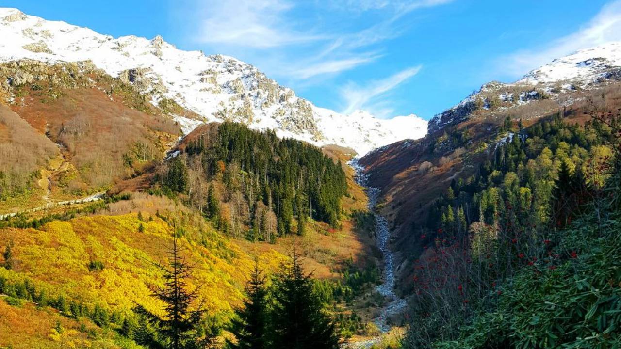 Maçahel Vadisi, sonbahar renkleriyle bütünleşirken Karçal Dağı etekleri de karla birlikte kartpostallık görüntüler oluşturdu.