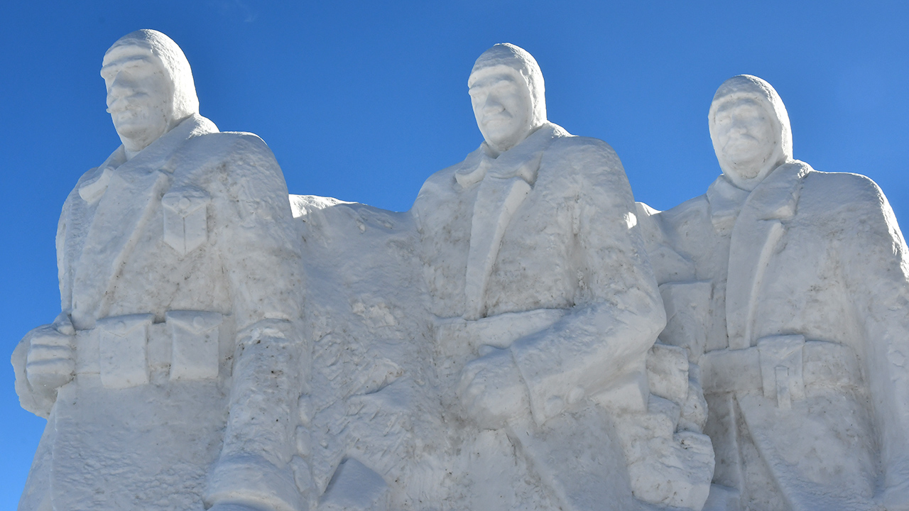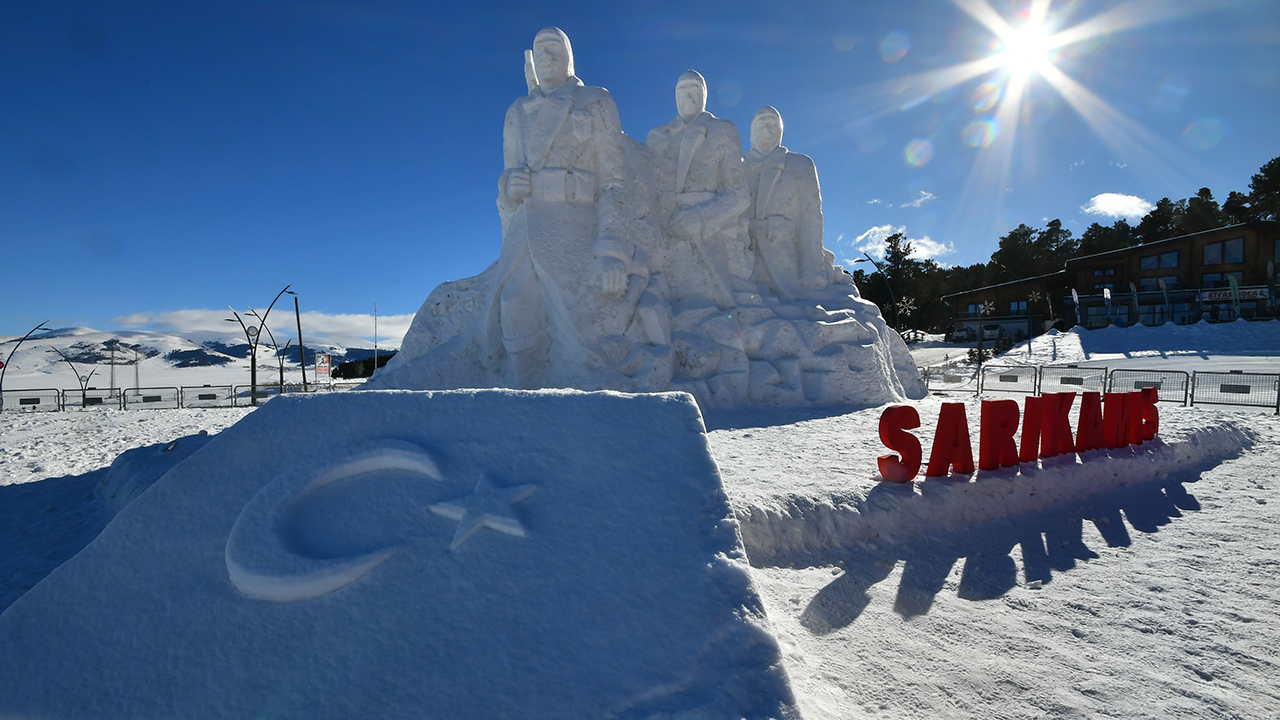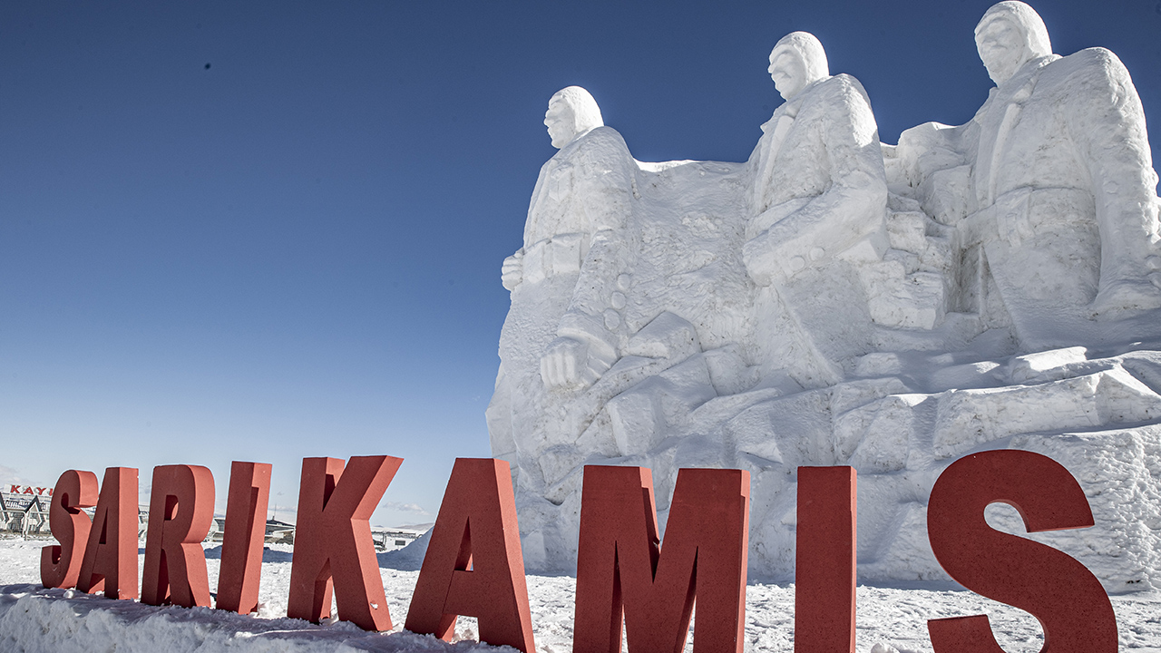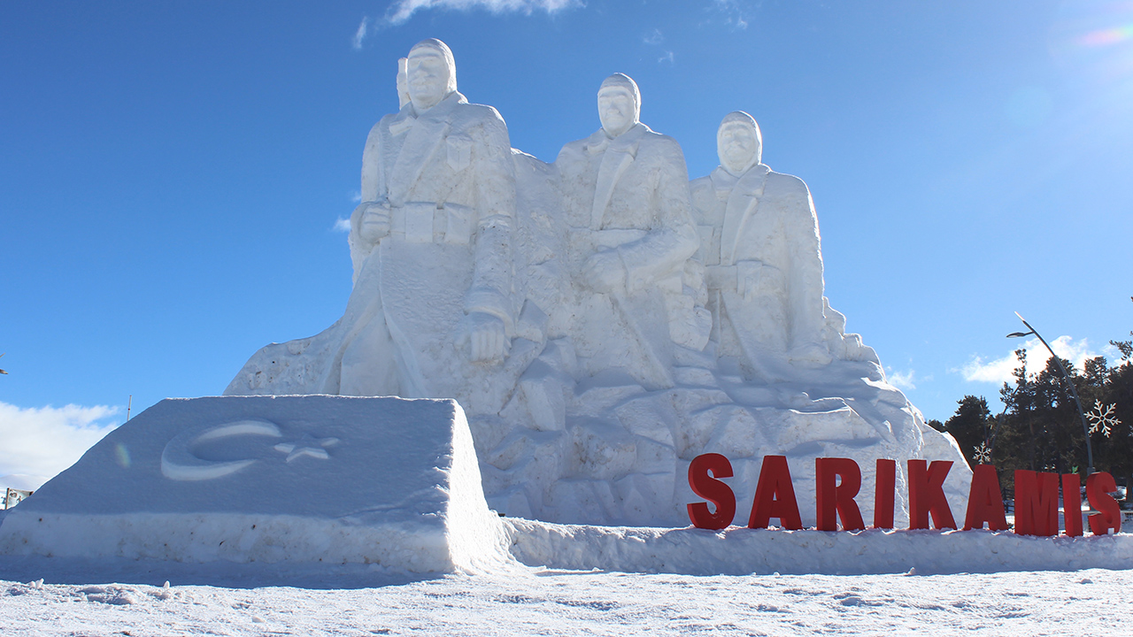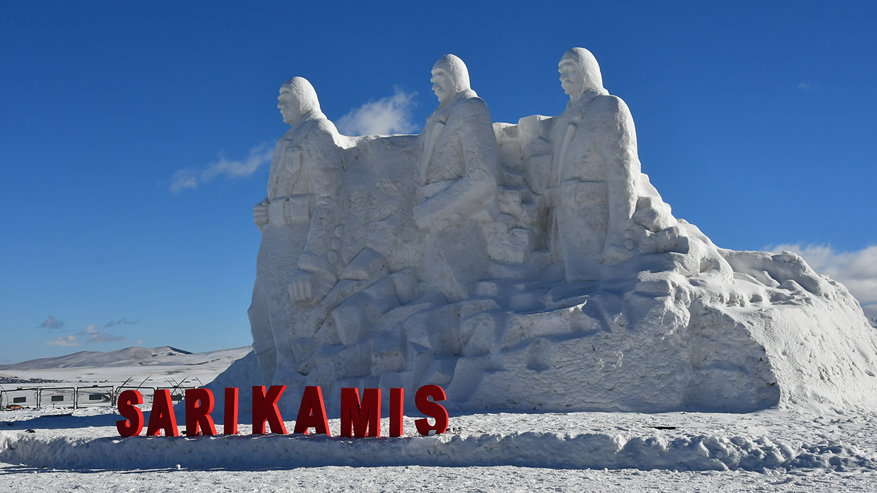 Kars'ın Sarıkamış ilçesinde Sarıkamış Harekatı'nın 109. yılı anma etkinlikleri kapsamında yapılan kardan şehit heykelleri, ziyaretçilerine duygusal anlar yaşatıyor.