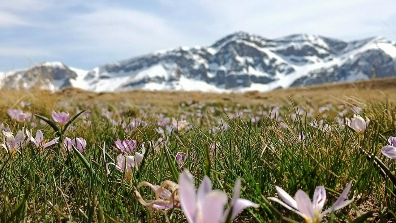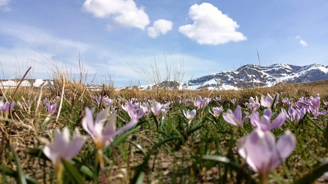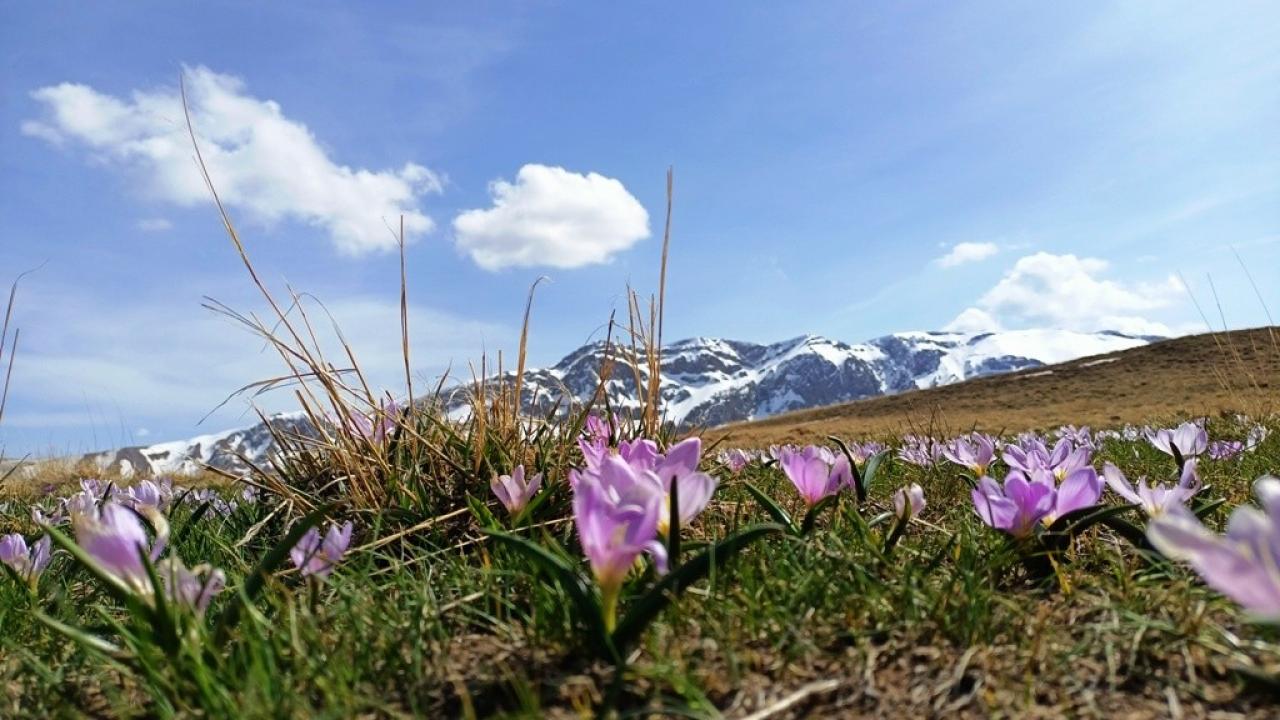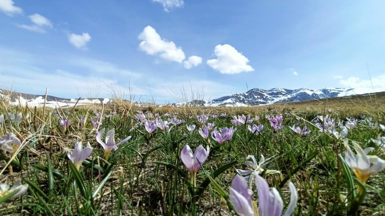 Kardelenlerin karlı dağlarla buluşması güzel görüntüler oluştu