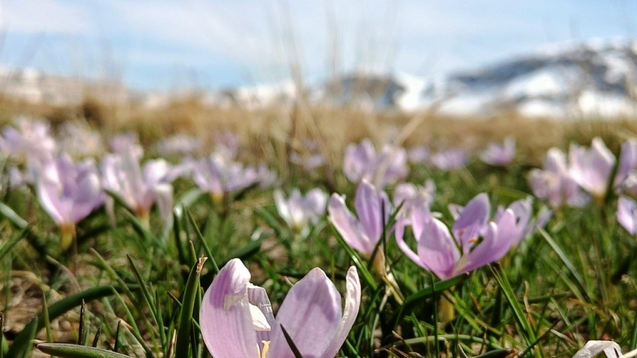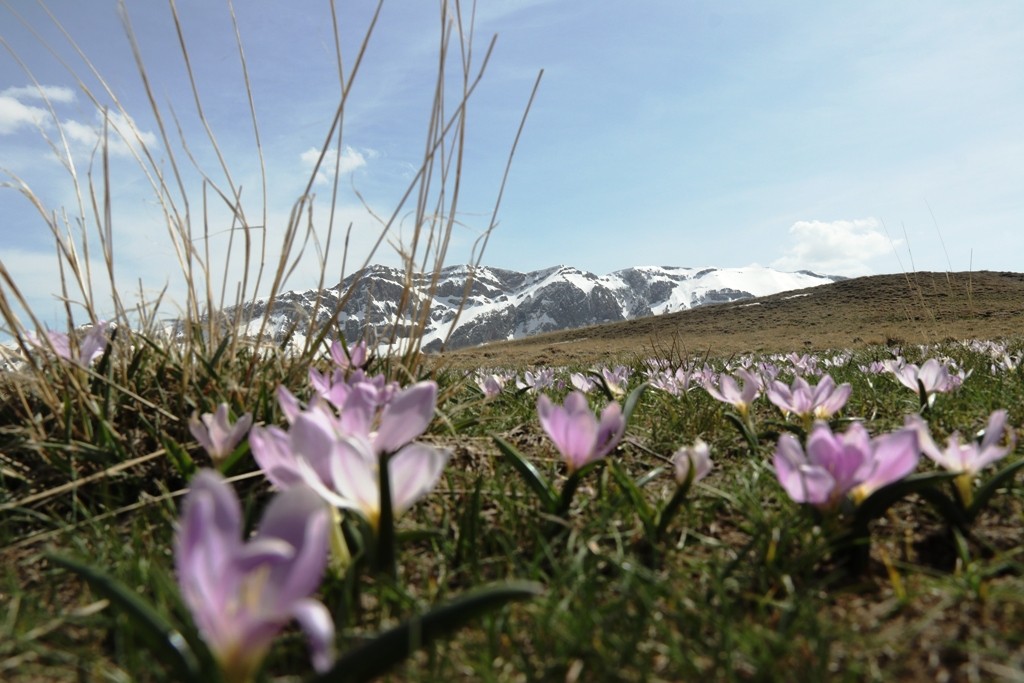 Bitlis’in Tatvan ilçesi sınırları içinde bulunan Nemrut Dağı’nda açan kardelen çiçeklerinin karlı dağlarla buluşması adeta güzel manzaralar oluşturdu.