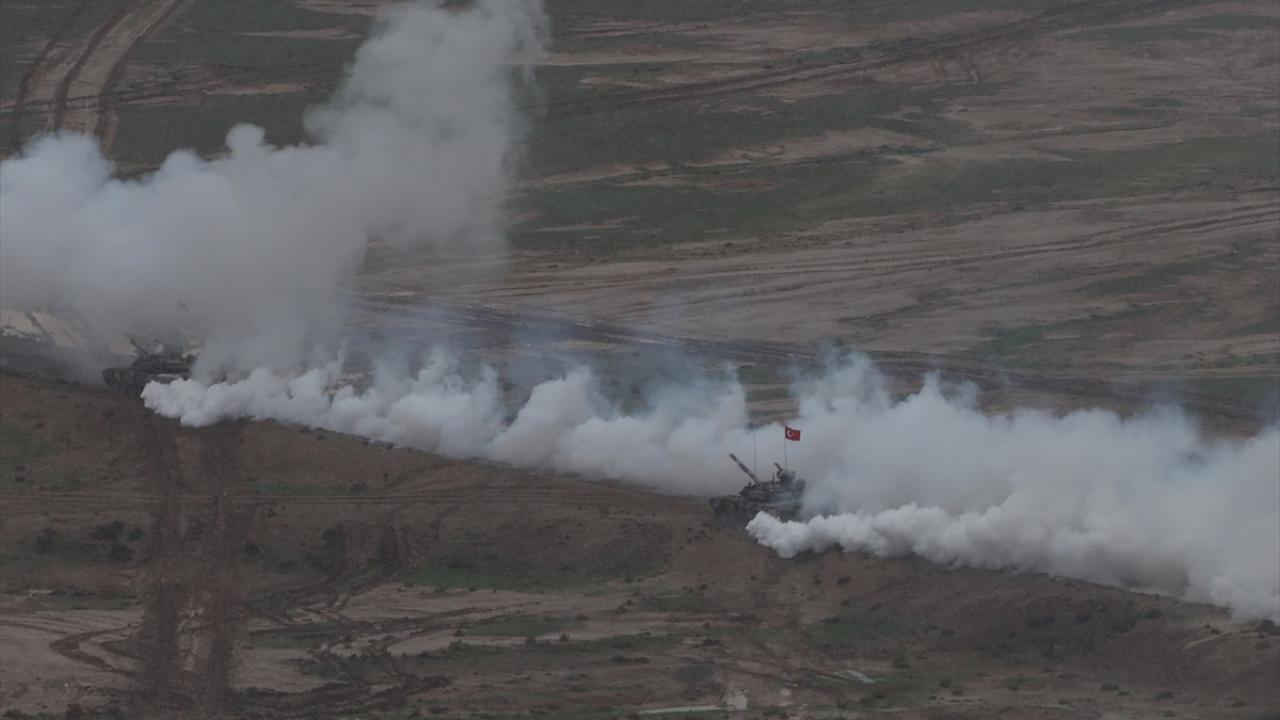 Hedeflerin tam isabetle vurulmasının ardından tank atışlarına geçildi.