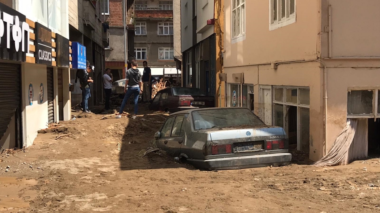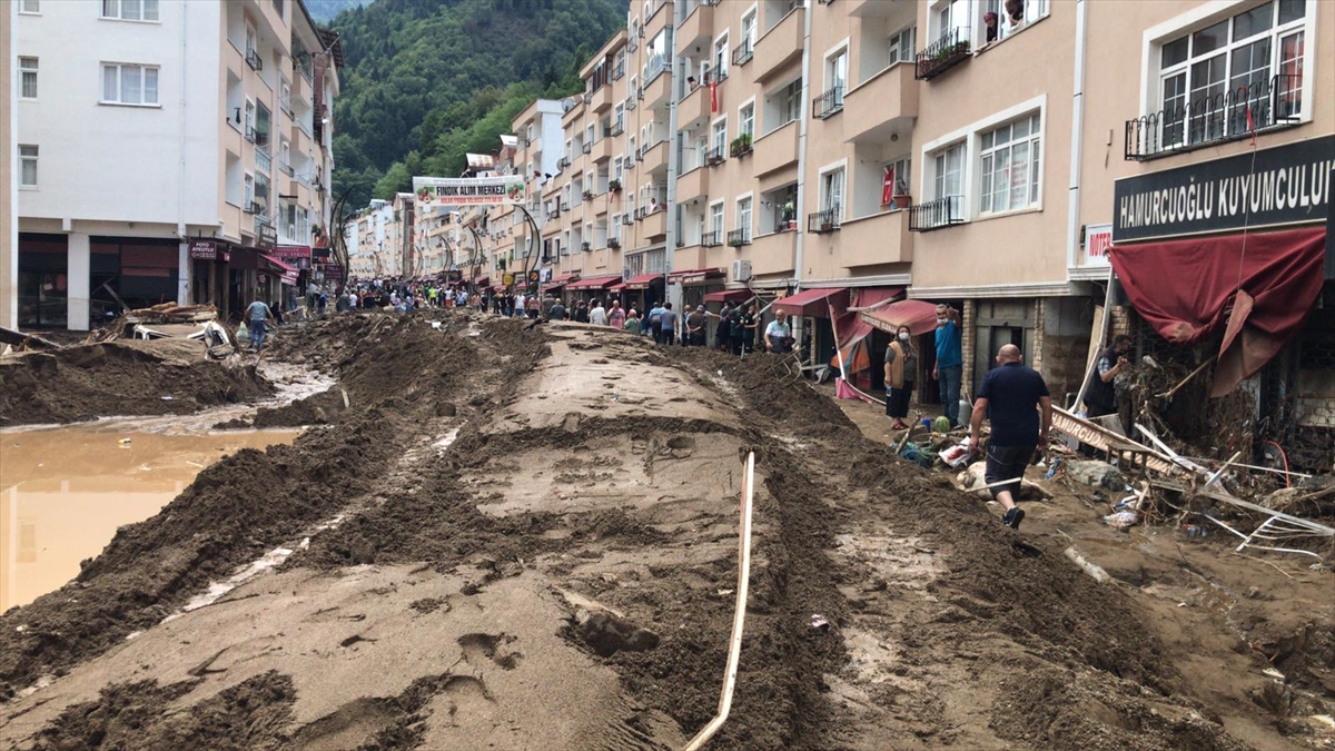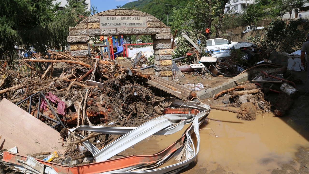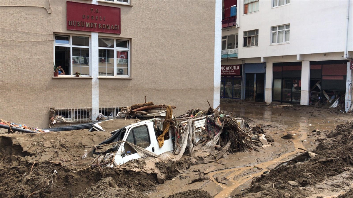 Dereli ilçe merkezinde yer yer 3 metreye ulaşan balçık nedeniyle iş yerleri ve dükkanlar ağır hasar görmüştü.