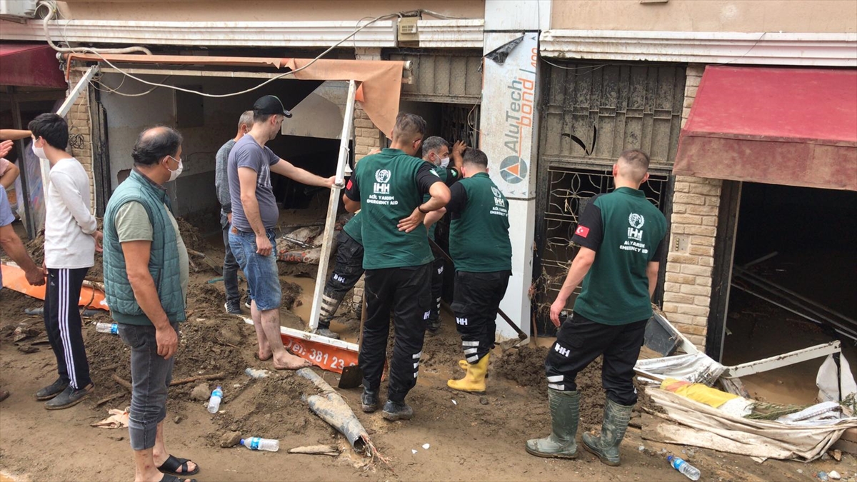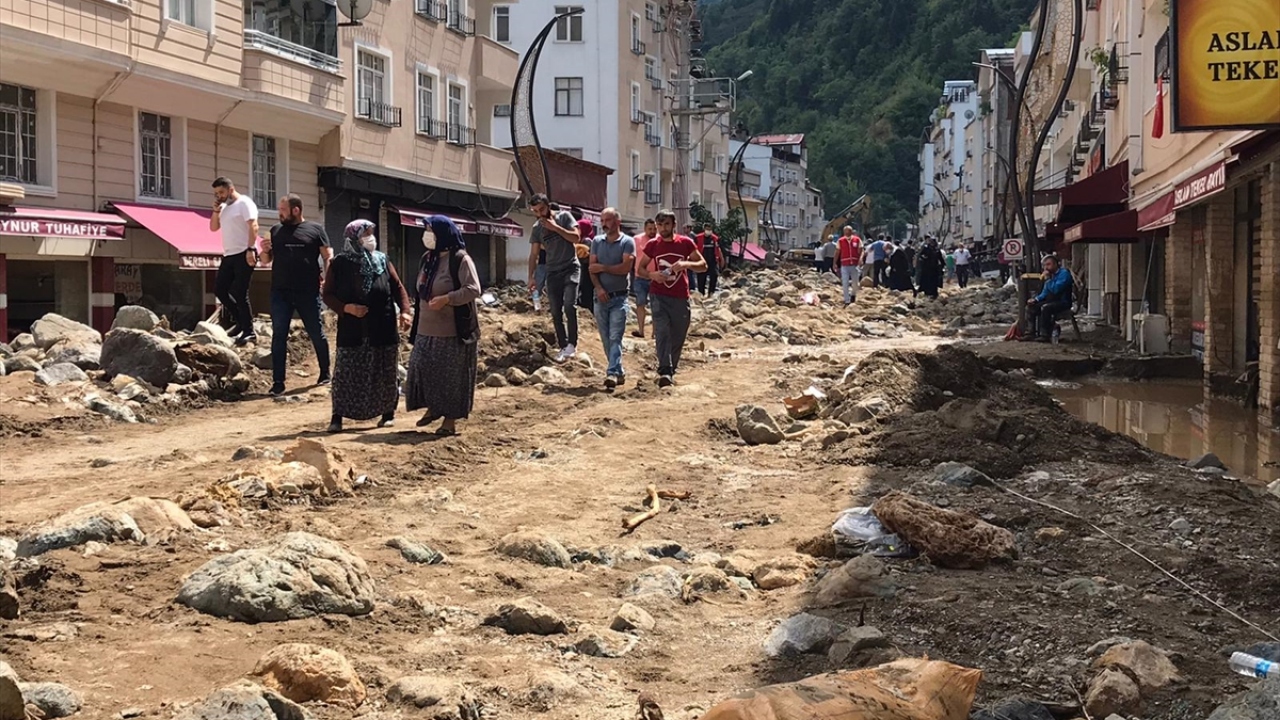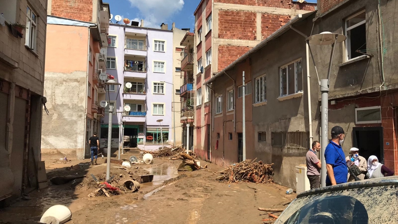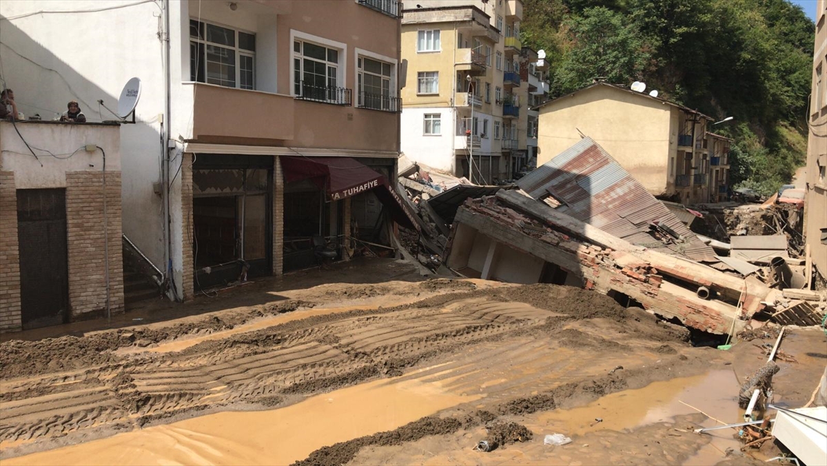 Dereli ilçe merkezinde yer yer 3 metreye ulaşan balçık nedeniyle iş yerleri ve dükkanlar ağır hasar görmüştü.