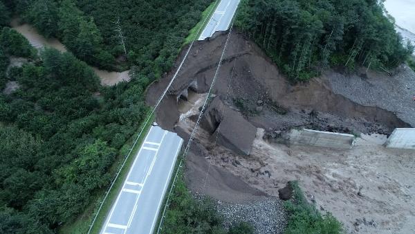 Tirebolu Doğankent yolunda menfez çöktü. 4’ü asker biri kepçe operatörü 5 kişi aranıyor. Yağlıdere’de dereler taştı evler boşaltıldı. 118 köy yolu ulaşıma kapandı. (Fotoğraf: DHA)