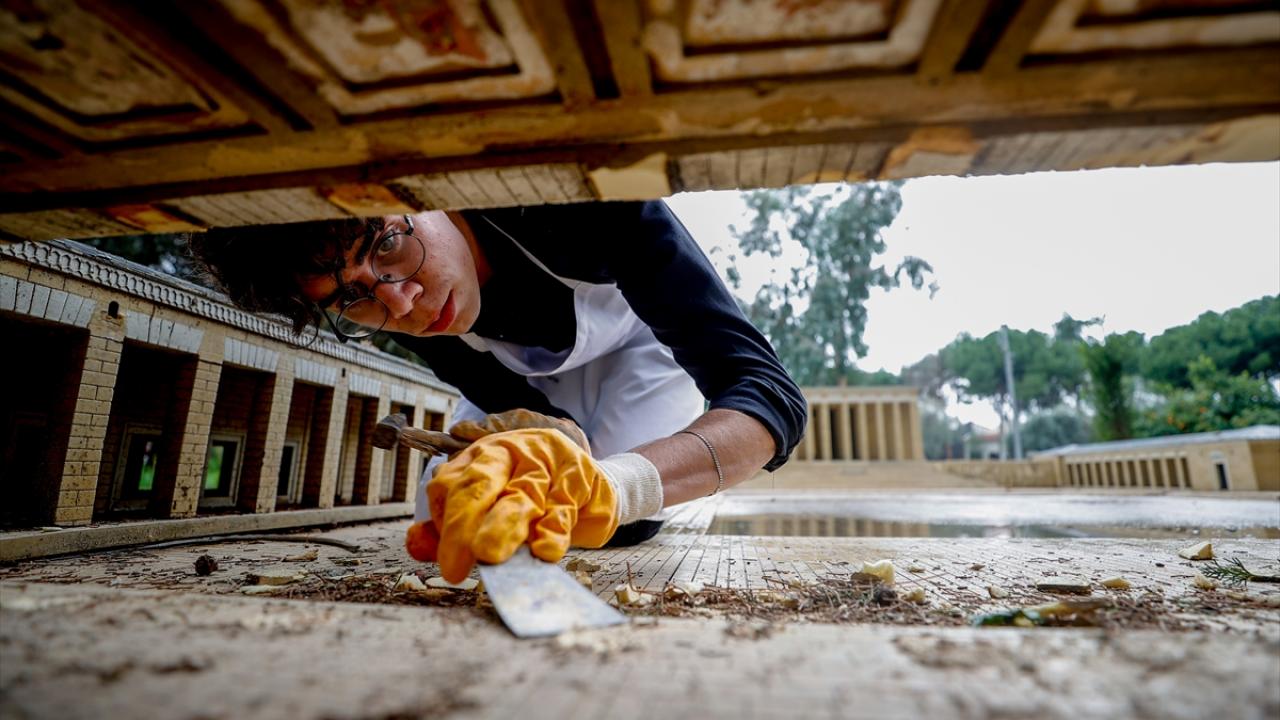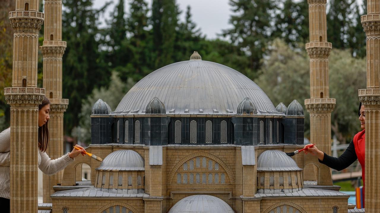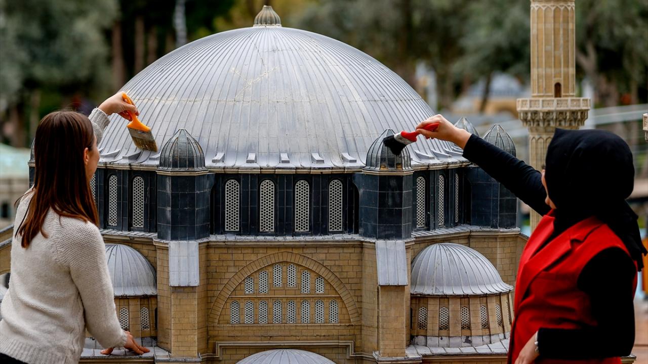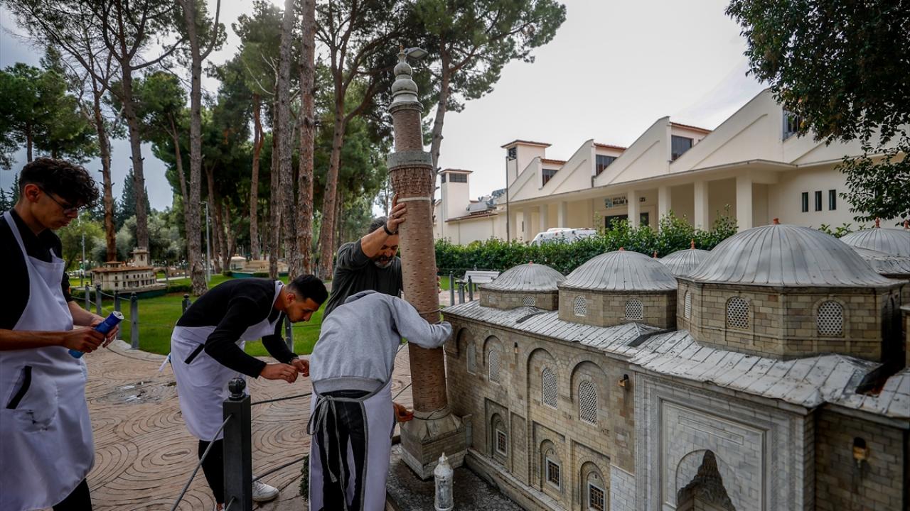 Antalya'da, tarihi ve kültürel eserlerin minyatürlerinin sergilendiği açık hava müzesinde, bazı ziyaretçilerin yanı sıra kedilerin ve kargaların zarar verdiği eserler, plastik sanatlar öğretmeni Hakan Kaya ve öğrencileri tarafından titizlikle restore ediliyor.