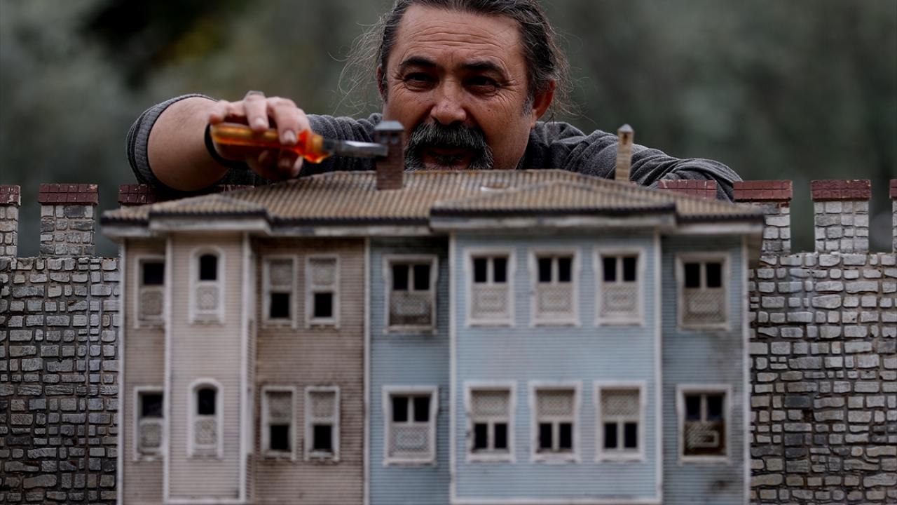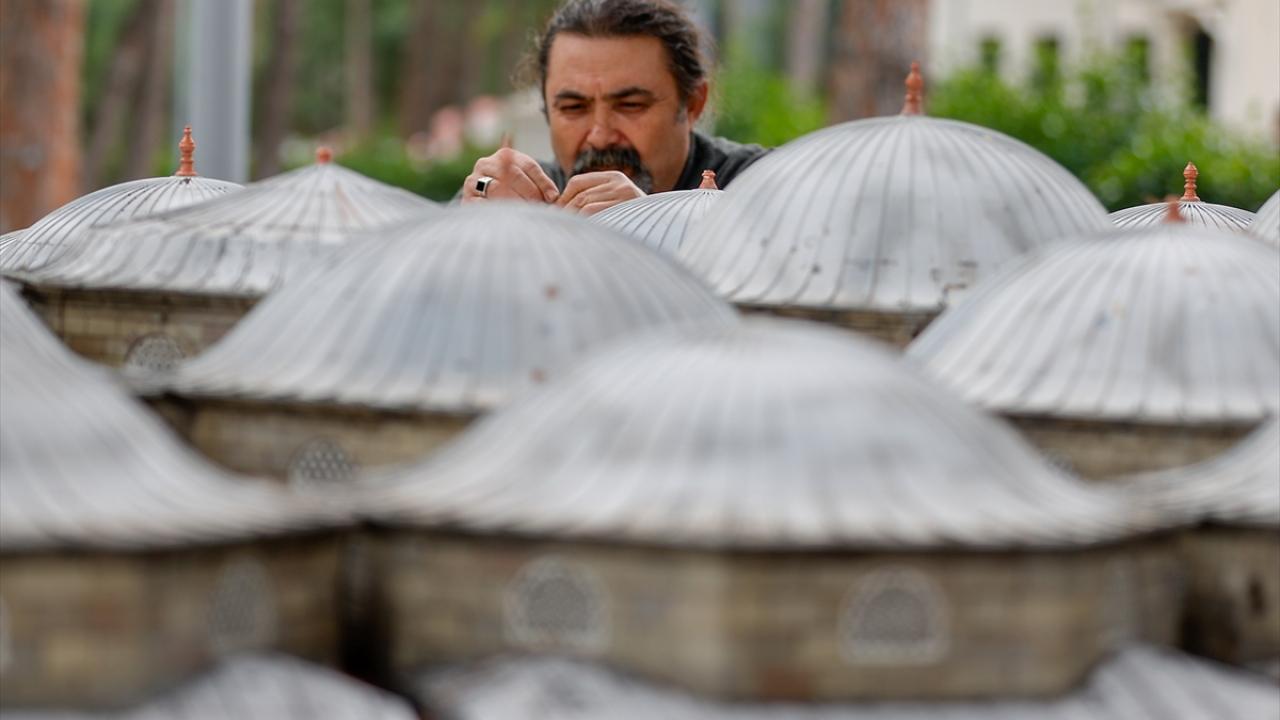Kaya, bazen söktüğü minareyi omzunda taşıyarak onarım yapacağı yere götürüyor, bazen de minyatürlerin kubbe ve çatısında saatlerce küçük dokunuşlarla tadilat yapıyor.