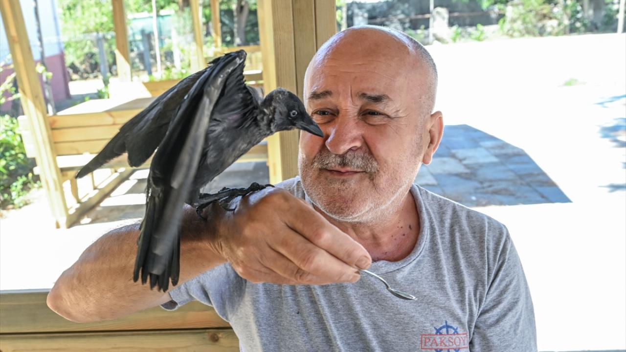 Dükkan sahibi Şeker’in elleriyle beslediği karga, on gündür dükkanda ayrılmıyor.