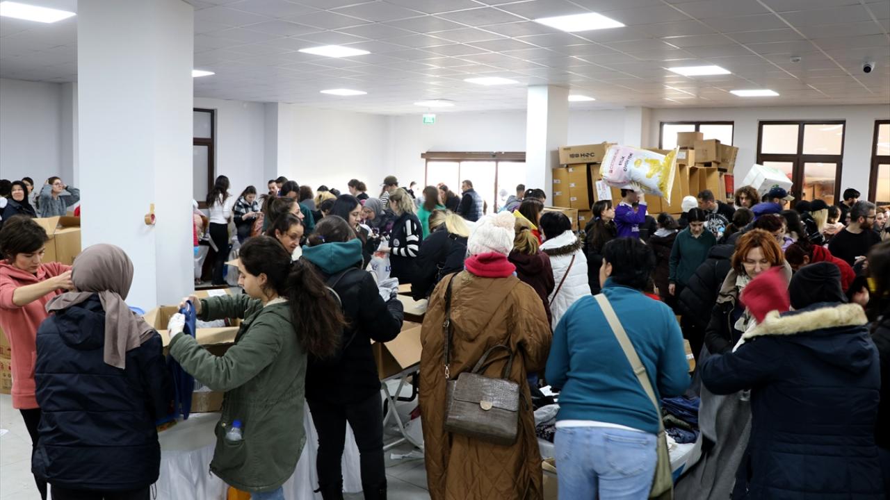 Depremzedeler için seferber olan vatandaşlar evlerinde bulunan ya da satın aldıkları yardım malzemelerini Valilik ve belediyenin oluşturduğu yardım noktalarına getiriyor.