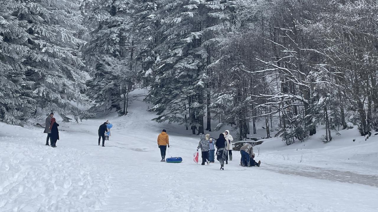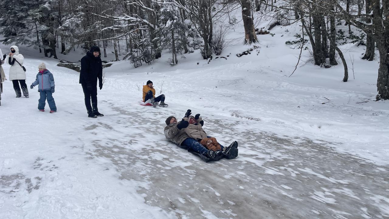 Hafta sonunu karın tadını çıkararak değerlendirmek isteyenler milli parkta yoğunluk oluşturdu.