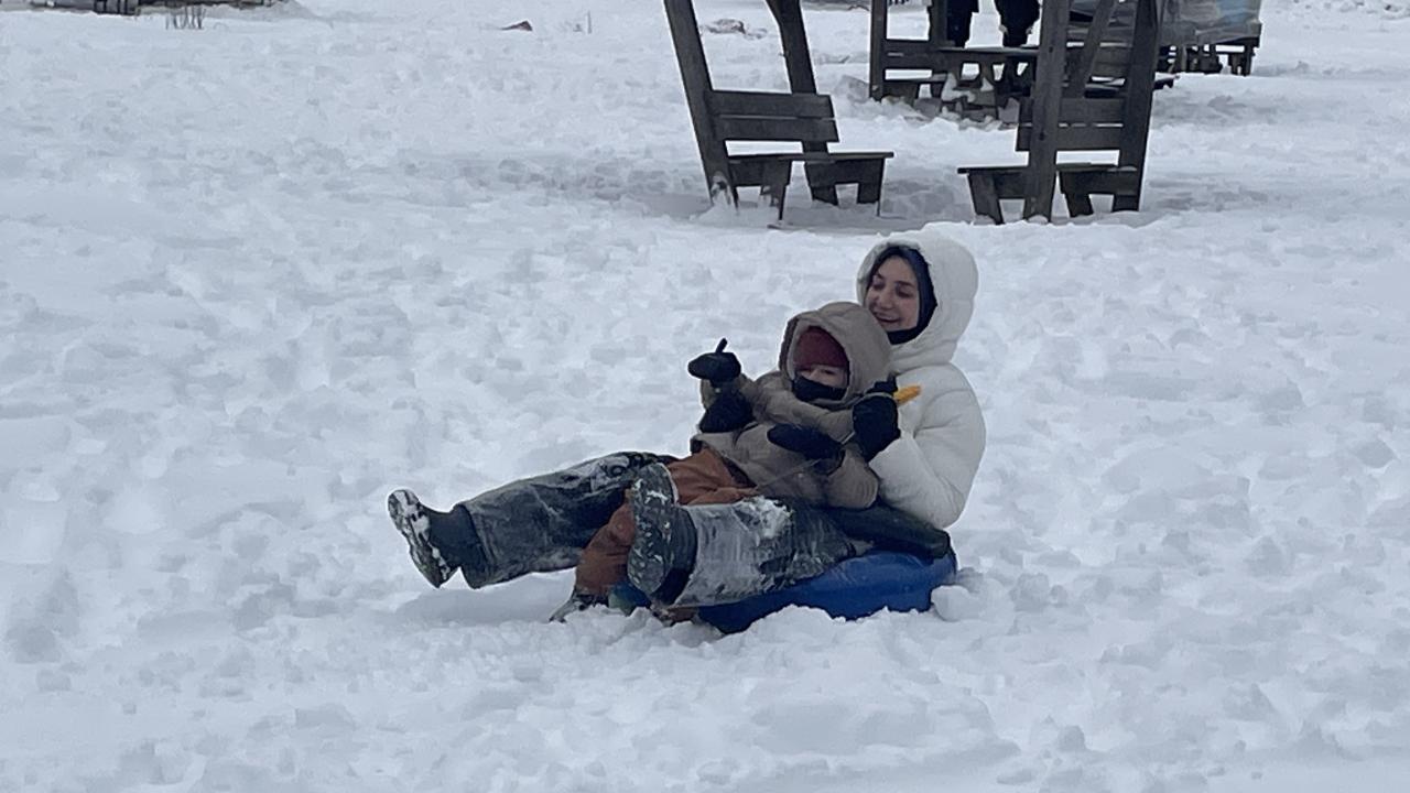 Çocuklar da aileleriyle kar topu oynayarak ve eğimli alanlarda kızak, şambrel ve poşetlerle kayarak eğlendi.