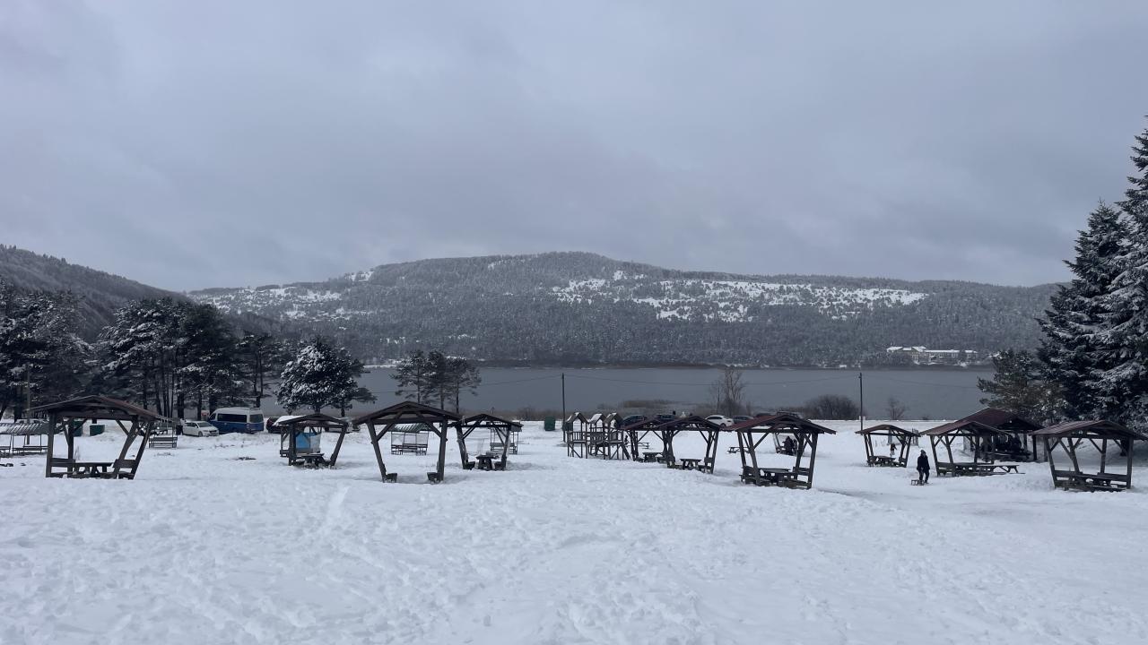 Günübirlik ya da konaklamak için Abant`a gelenler, kar kalınlığının yer yer 15 santimetreye ulaştığı göl çevresinde yürüyüş yaparak kar manzarasının keyfini çıkardı.