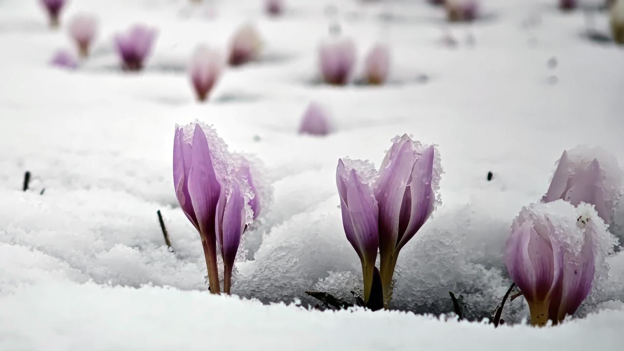 Karla buluşan çiğdemler kartpostallık görüntüler oluşturdu